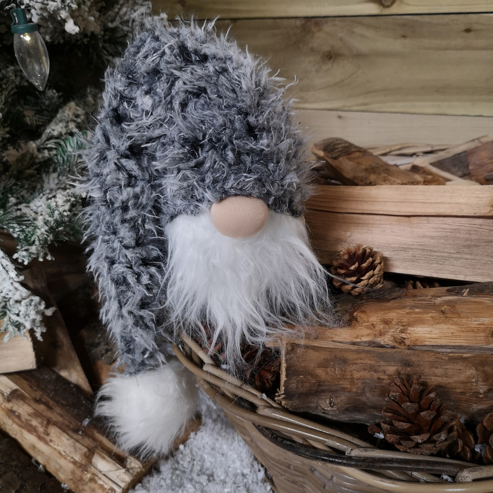 Bring home the festive spirit with Samuel Alexander Grey Oversized Fur Hat Gonk Christmas Decoration 29cm. Featuring a Grey plush body, White beard and an oversized fluffy Grey festive hat, this Gonk decoration is charming on its own or as an addition to any festive display. This cute piece will bring the festive spirit to all visitors. The Gonk is ideal for anywhere around your home whether you choose to place it on a mantle piece, windowsill or tabletop display and is suitable for indoors only. Note: this is not suitable for children under three - designed as a decoration rather than a toy. Dimensions: H29 x W12cm.