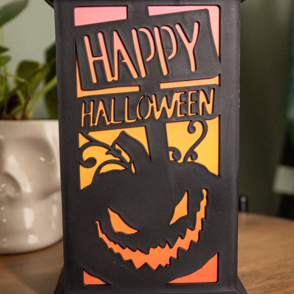• With a cut out silhouette of Happy Halloween