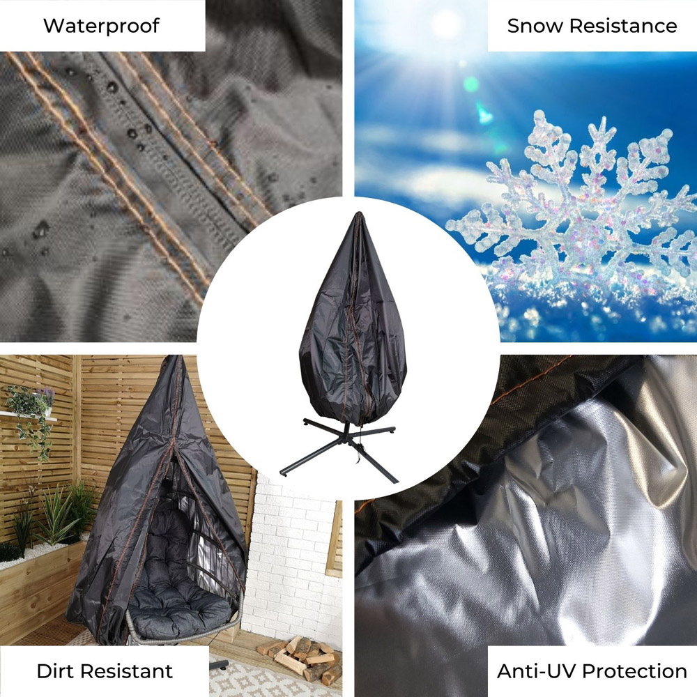 Protect your outdoor furniture with the Samuel Alexander Hanging Egg Chair Cover. Crafted with top-notch waterproof fabric and equipped with anti-UV technology, this cover offers reliable protection against rain, wind, dust, and dirt. With dimensions of 115 x 190cm, this cover fits snugly over your garden swing chair or hammock, ensuring its cleanliness and dryness throughout the year. The heavy-duty zipper allows easy access to your chair while securely keeping it covered when not in use. Cleaning the cover is a breeze, requiring only a damp cloth. This makes it an ideal solution for those who prefer spending less time on furniture maintenance and more time enjoying the outdoors. Its stylish and practical design also makes it perfect for balcony furniture, allowing you to keep your swing chair in pristine condition regardless of the weather.