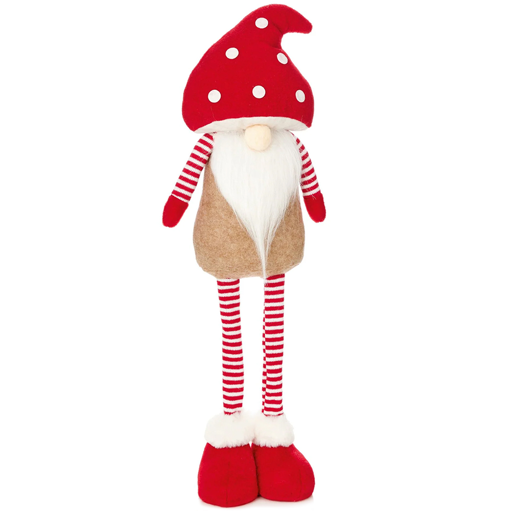 Add a whimsical touch to your holiday decor with the Samuel Alexander Male Mushroom Hat Standing Gonk Christmas Decoration 51cm. Standing 51cm tall, this festive figure sports a red and white mushroom-patterned hat, red-striped arms and legs, and a fluffy white beard. Designed for indoor use, it brings a joyful spirit to any room. Inspired by Nordic folklore, it is said to protect homes throughout the season, bringing joy and warmth wherever it's placed. Measuring 51cm x 8cm x 15cm, it's sure to bring smiles to all who visit.