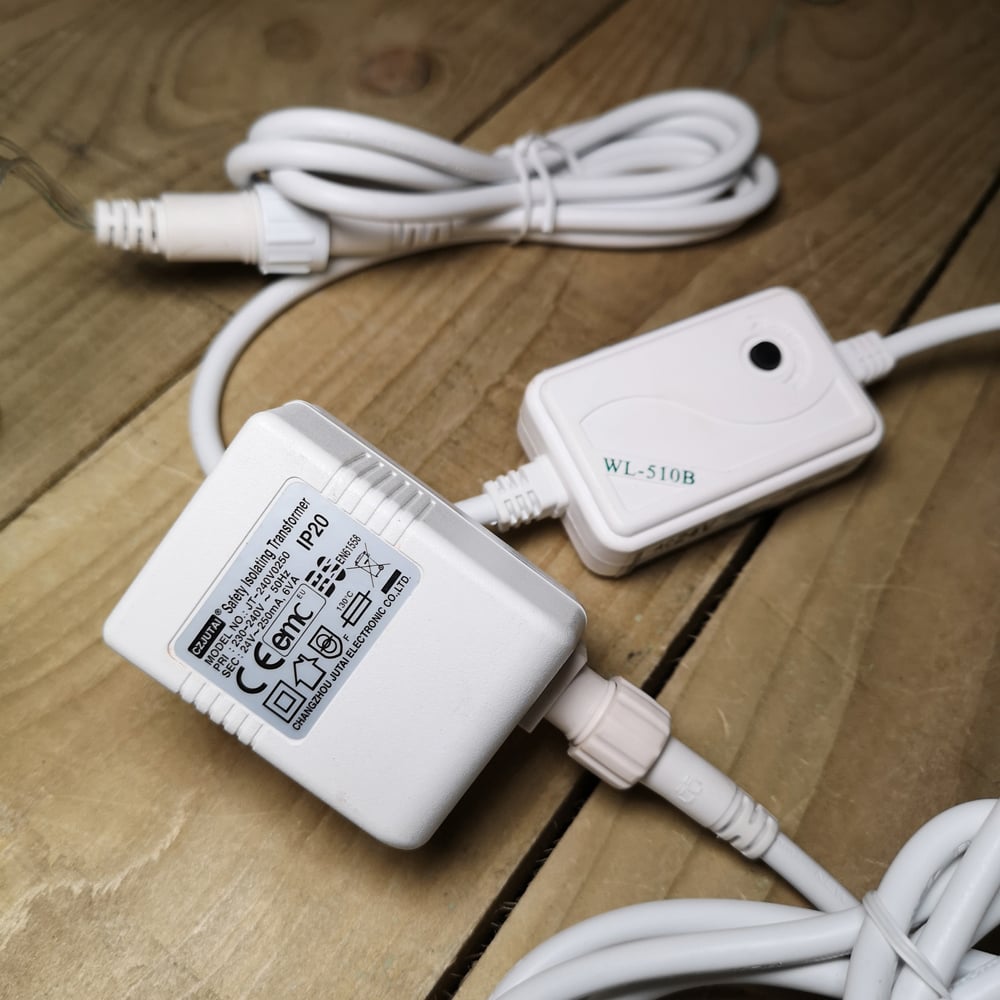 80 Multi Coloured Connectable Sting Lights - Clear cable. Ultra bright LEDs. Connect multiple lights with only one plug. Suitable for indoor & outdoor use only. 8m Light length with an additional 3m lead cable. This is for one set of lights with one transformer. 8 multi functions, including chasing, fading, flashing and static, with memory to remember your favourite setting.