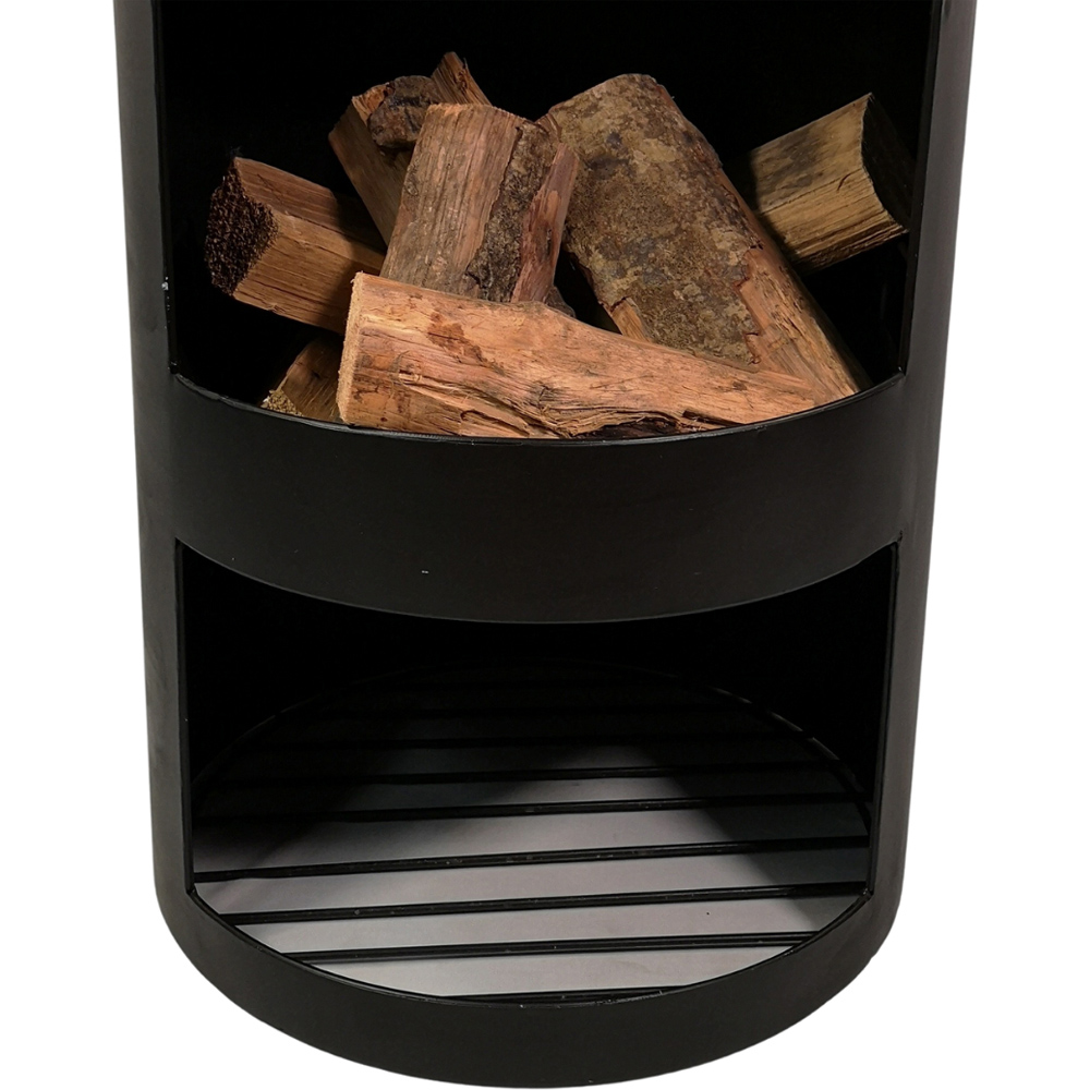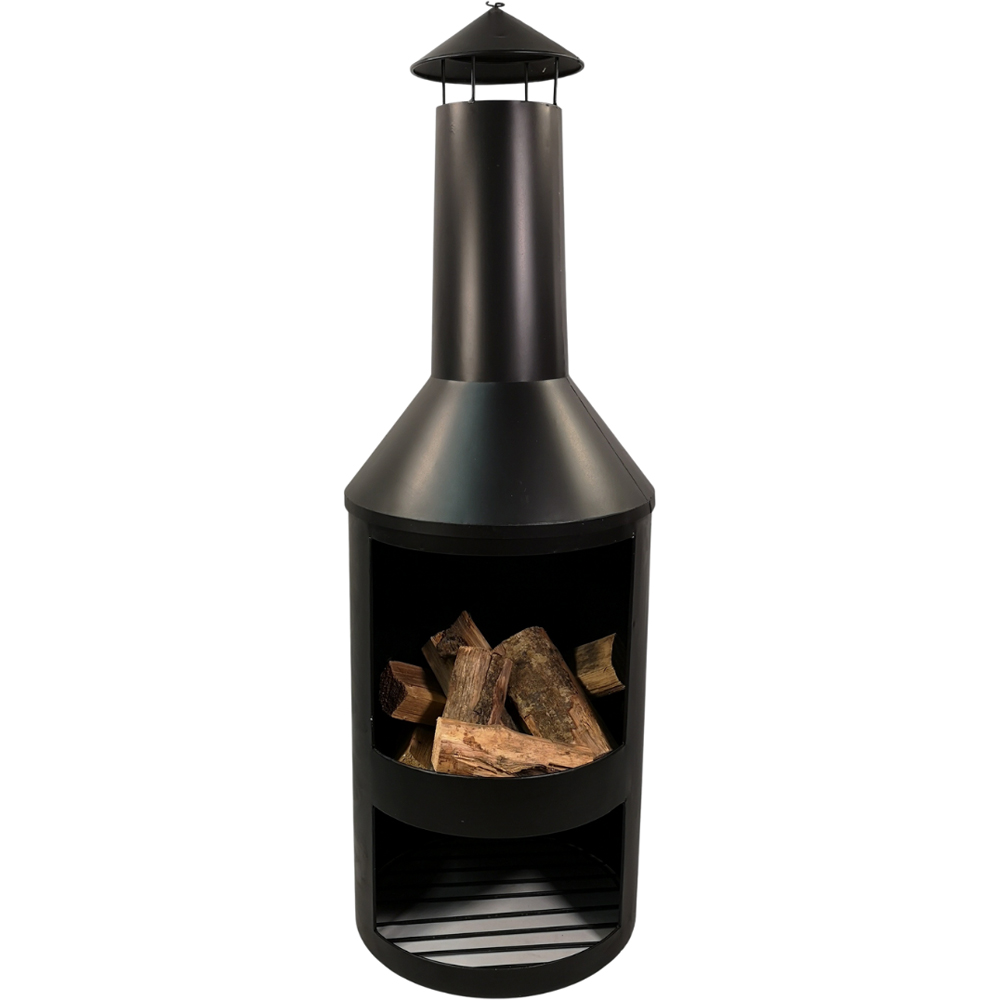 Relax and get cosy in your garden for those cool evenings with this Outdoor Garden Log Burner Fire Pit by Samuel Alexander. This beautiful black chiminea log burner can complement your outdoor space, bringing charm and warmth. Made from steel with a black powder-coated finish, this log burner features a chimney that directs the smoke upwards to minimize inhalation and eye irritation. It is 140cm high with a base diameter of 45cm, and this burner has a convenient storage space to keep your logs dry and readily accessible. A cover for the chiminea protects it from the elements. It extends its longevity to keep it looking brand new with its waterproof, anti-UV and heavy-duty construction, including easy cleaning properties. Also, this cover will provide superior protection and ensure your chiminea will remain pristine for years. It requires minimal assembly and is quick and easy to clean with a lift-out tray. The dimensions are H140cm x D45cm, with the lift-out tray being D38cm, and the cover dimensions are H140cm x W71cm.