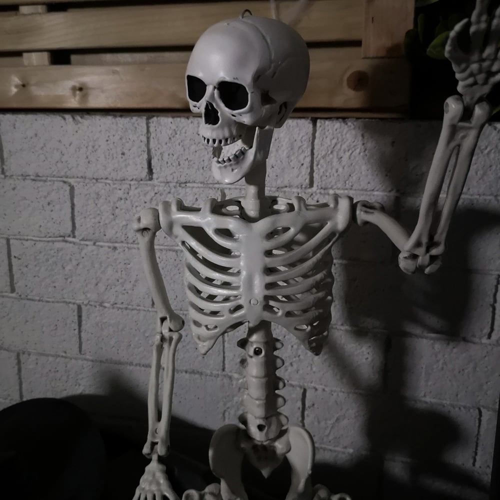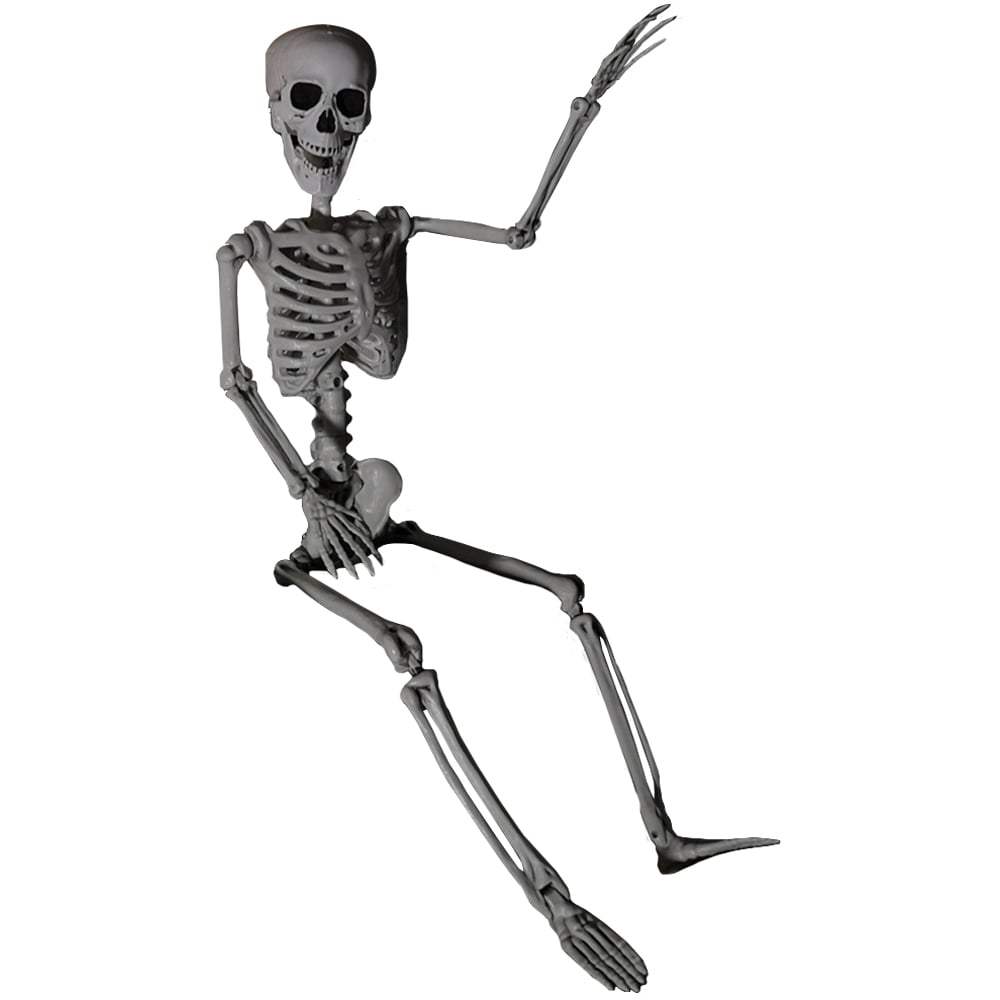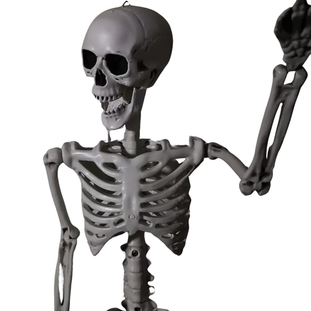 Add a layer of spookiness to your home with the Samuel Alexander Posable Full Body Skeleton Halloween Decoration 3ft. Made using durable plastic, this decoration has movable joints that let you pose it the way you like to suit your Halloween decor perfectly. It wears a distressed white finish to add an authentic touch to your Halloween scene. Suitable for indoor and outdoor use, it comes with a black hanging string for easy suspension from anywhere. Whether it's suspended from a ceiling, wall, or tree or hidden in a doorway or porch, this decoration is sure to add a spooktacular touch to your home. Note: The head does not move. This skeleton cannot stand upright on its own and is for decorative purposes only. Size: H90 x L23 x W11cm.