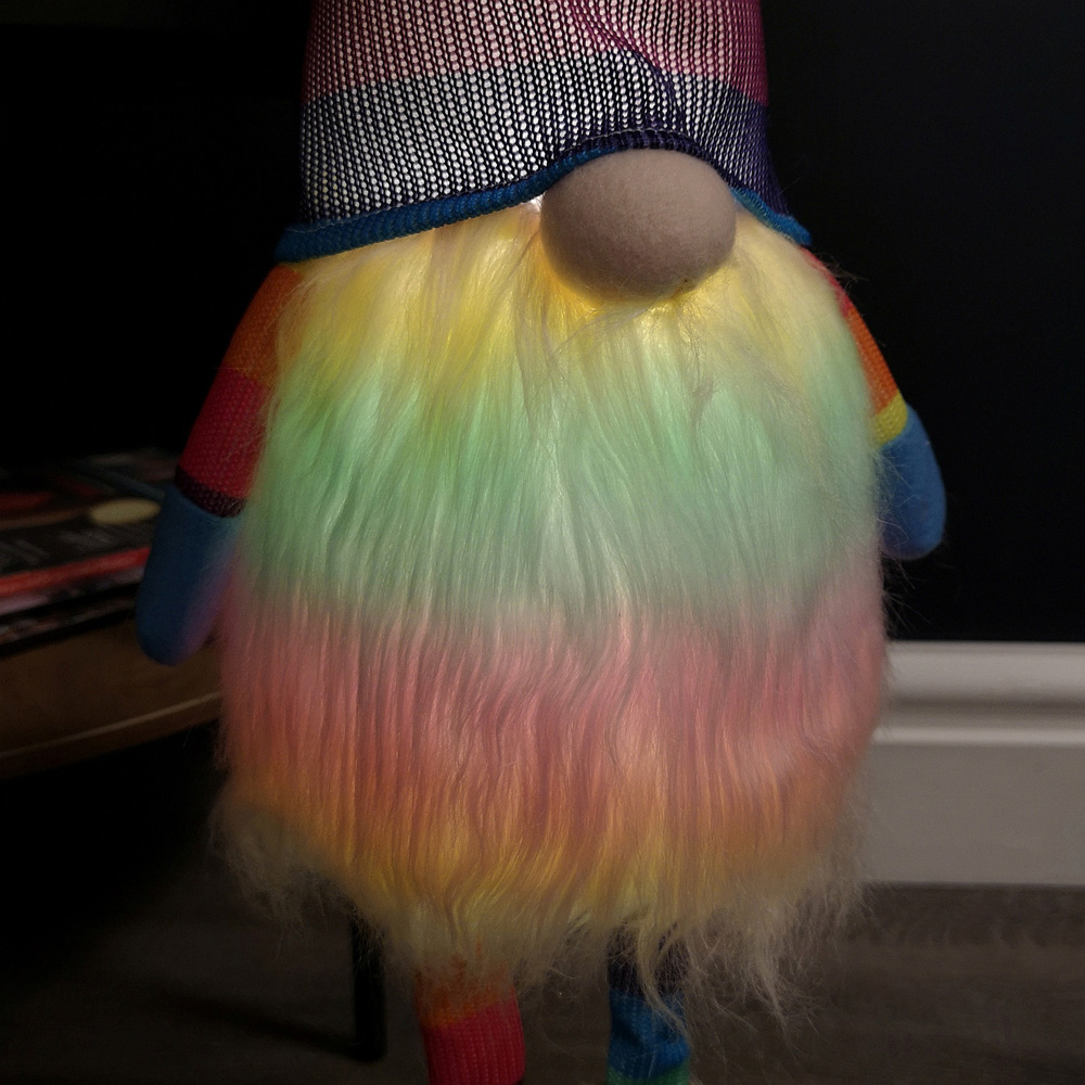 Brighten up your home this Christmas with this Samuel Alexander Rainbow Light Up Gonk Christmas Decoration 60cm. Featuring a pastel rainbow light-up fur body, beard, legs and festive hat, this gonk decoration is charming on its own or as an addition to any festive display. With a battery pack located underneath the beard, this gonk is perfect for display anywhere in the home, whether on a mantelpiece, windowsill, or tabletop. Please note: This decoration requires 3 x AAA batteries (not included) and is suitable for indoors only. Dimensions: H60 x W23 x D20cm.