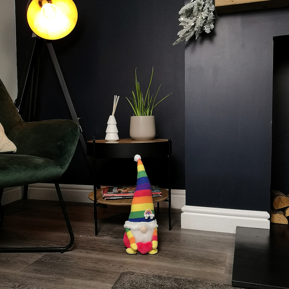 Transform your festive display with the Samuel Alexander Rainbow Plush Sitting Gonk Christmas Decoration 39cm. Featuring a rainbow design, this gonk fills your space with bright colours. It holds a cute little heart in its hands and adds warm finishing touches to your home. Whether you use it as a stand-alone piece or part of a festive display, this gonk is sure to bring a smile to your visitors' faces.