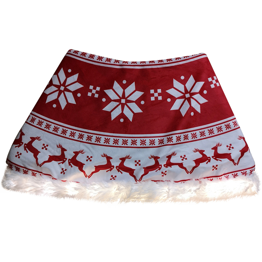 Samuel Alexander Red and White Snowflake and Reindeer LED Christmas Tree Skirt 60cm