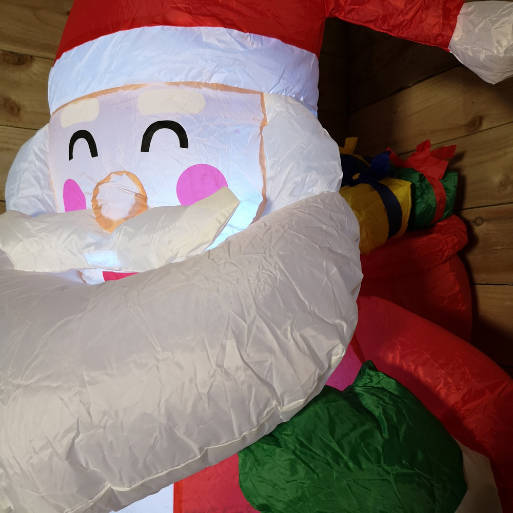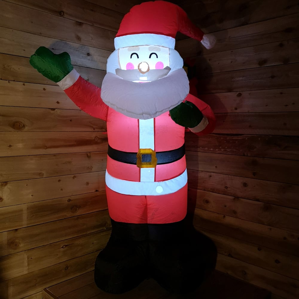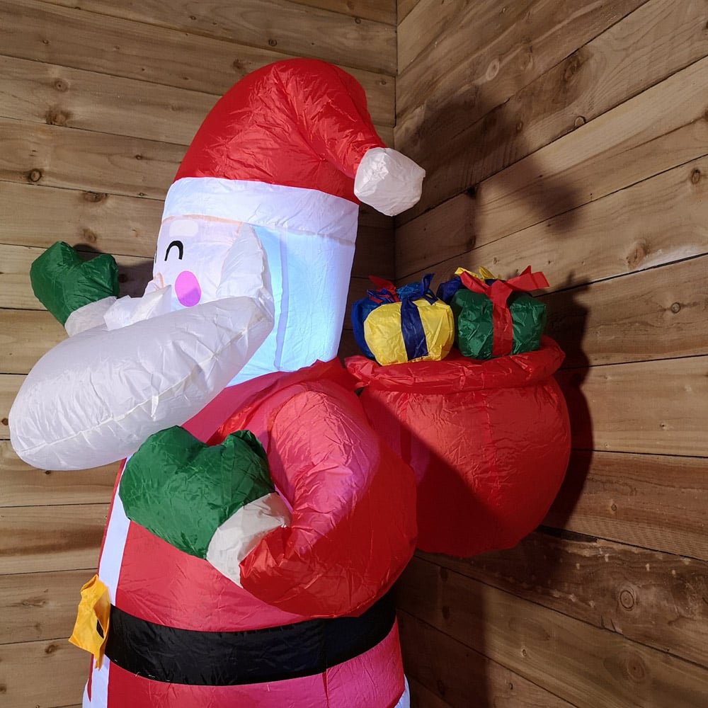 Celebrate the holidays with this Samuel Alexander Santa Claus With Gifts Light Up Inflatable Christmas Decoration 6.2ft. Standing 6.2ft tall, it features Santa Claus delivering presents, creating a festive centrepiece. With built-in LED lights, it lights up beautifully for nighttime displays, making it a charming addition indoors or outdoors. Easy to set up, it comes with a low-power, eco-friendly transformer that must be kept indoors or in a weatherproof socket.