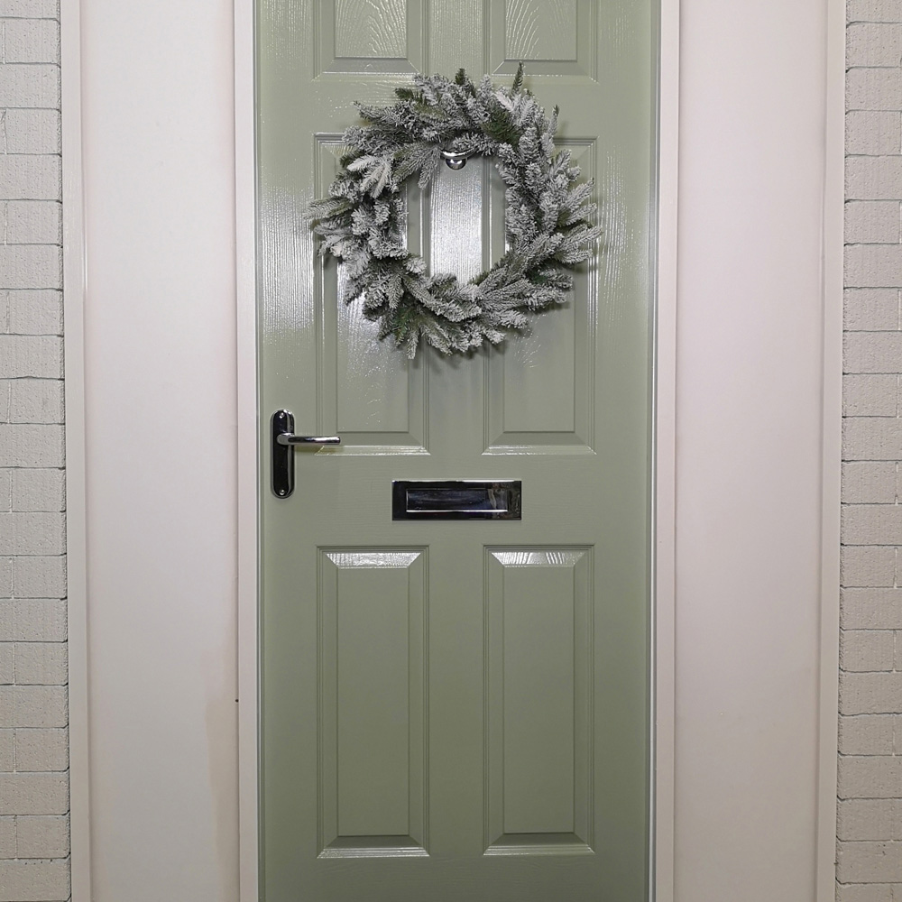 Embrace the magic of a winter wonderland with this Samuel Alexander Snow Flocked Christmas Wreath Green 45cm. This wreath is a wonderful addition to any festive display or can stand beautifully on its own, bringing a warm holiday spirit to all visitors. Featuring 84 mixed PE and PVC tips, it offers a natural and realistic appearance, reminiscent of freshly fallen snow on lush green trees. This decoration is perfect for various places around the home or garden, whether hung on a door, showcased on a mantlepiece, or displayed on a wall. Dimensions: H45 x W8 x L45cm. Inside Diameter: 31cm.