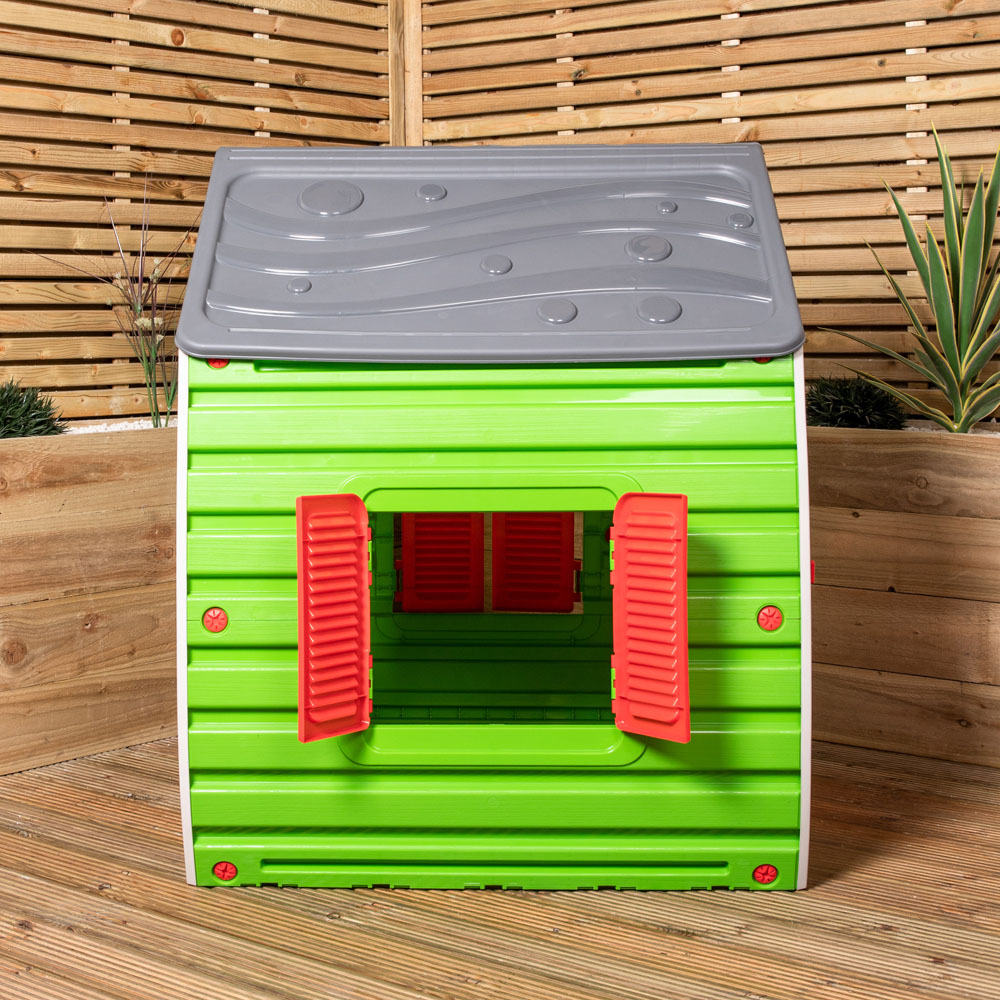 Keep the kids entertained with this Grey and Green Magical Playhouse. Playhouses contribute to the mental and physical development of children whilst in a safe environment and encourage them to be creative, imaginative and explore the world around them, promoting cognitive skills and brain development. Having a playhouse can be enjoyed all year round, whether you place this in the back garden to enjoy outdoor time or have this indoors for when it's raining. This playhouse will provide hours of endless fun. This brightly coloured house will help stimulate your child's imagination and allow kids to have a place of their own to entertain their friends. Made from a strong, durable plastic, this playhouse is lightweight, allowing it to be moved indoors or outdoors. This Wendy house features a window with working shutters and a door for a well-ventilated play area. The door has a letterbox slot for the house to receive its own post! Supplied flat-packed with easy assembly, no tools required. Easy to maintain, just simply wipe with a damp cloth to keep this looking new for many years to come. Suitable for 12 months + Product Dimensions Height: 109cm Width: 90cm Depth: 102cm