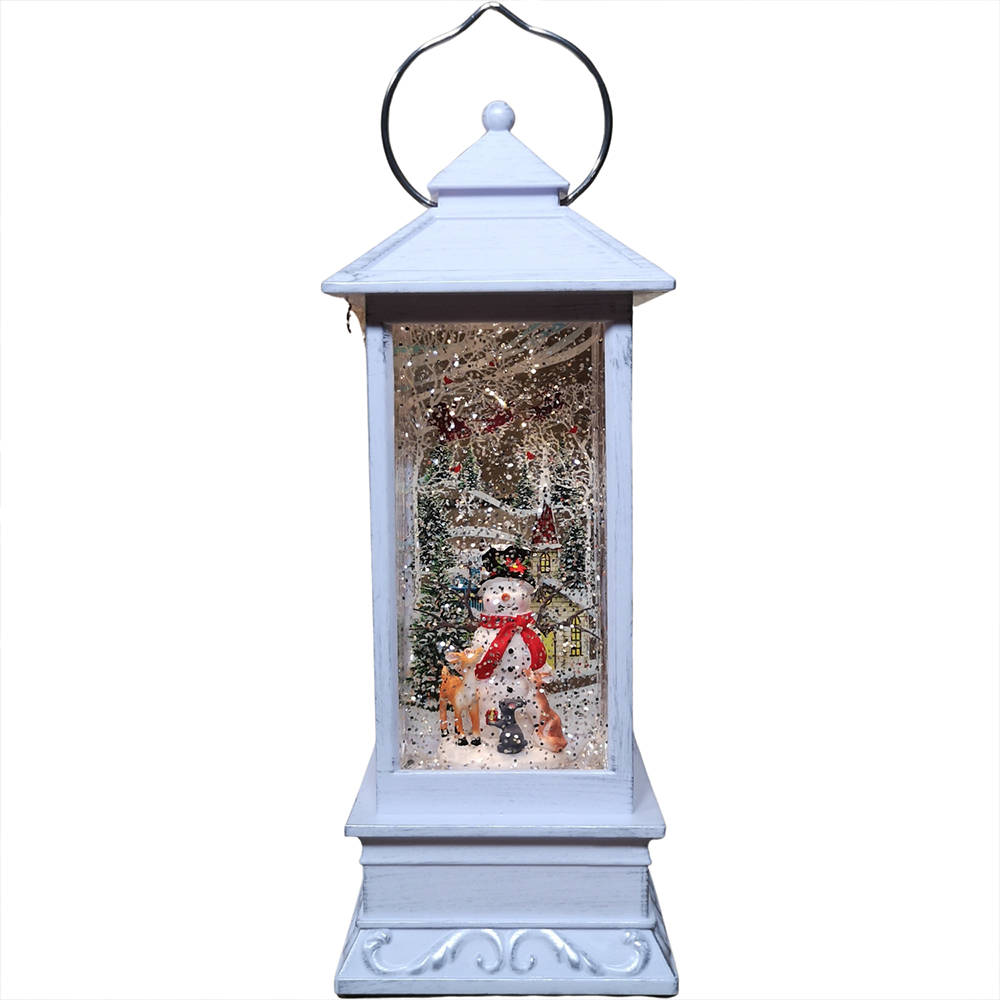 Samuel Alexander White Snowman Scene Water Spinner Lantern Christmas Decoration 31cm
