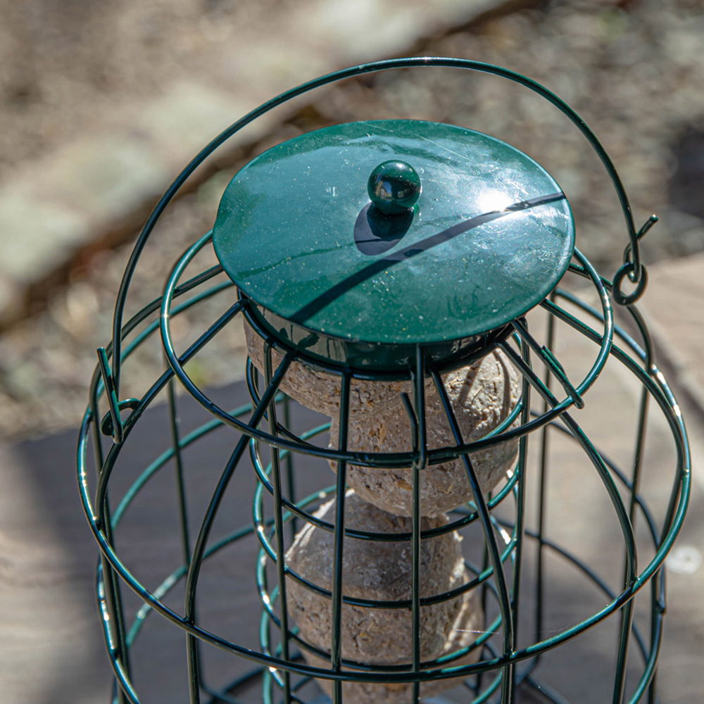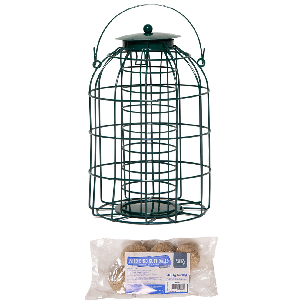 Create a tranquil paradise and attract a variety of wild birds into your garden this year with this fat ball feeder cage and a pack of suet fat balls. Birds spend most of their day foraging for food to meet their needs and the needs of their nestling. Bird feeders are an easy food source, giving them a stable source of nutrition. Having a reliable source of food and a safe place to eat is especially important at times of the year when food is harder to come by, when competition is high. This bird feeder is perfect for holding suet fat balls, kitchen leftovers and even fruits. Made with a powder-coated metal mesh construction with a guard to deter squirrels and to allow the birds to feed safely and happily. Supplied with a pack of suet fat balls, this feed is made with energy-rich fats, cereal oats and seeds without any bulking or waste products and is rich in essential nutrients. This feed is ideal for providing birds with the energy they need. Simply fill the feeder with the feed and hang it on a suitable branch high enough away from predators, or hang it on a bird feeding station with the hanging loop. Bird feeders offer a fun way to observe birds up close and connect with nature. Bird Feeder: H27 x D16cm and 6 pack of suet fat balls 480g.