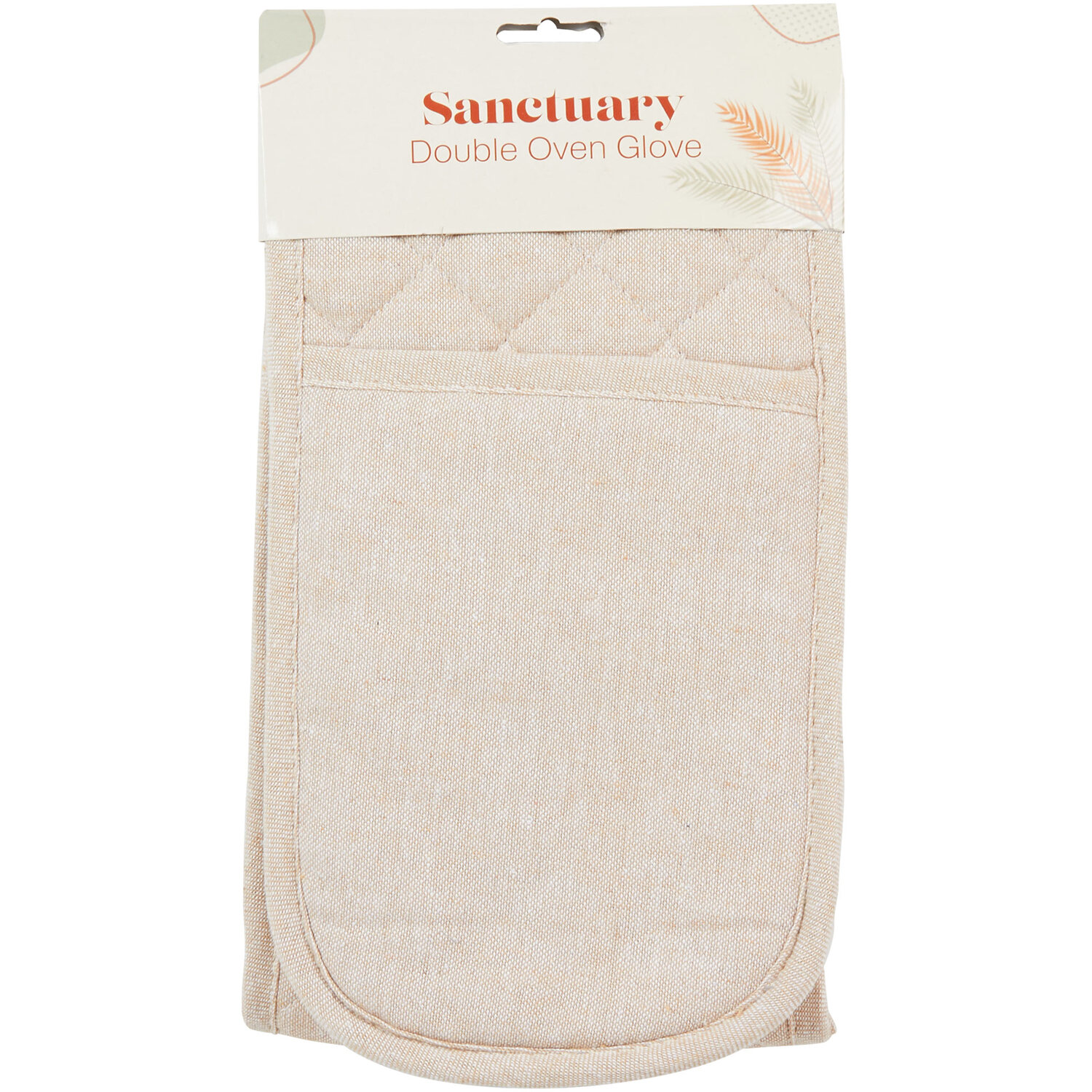 The Sanctuary Double Oven Glove protects your hands while using hot dishes while cooking and baking. Its natural colour scheme provides a contemporary feel while effortlessly coordinating with your kitchen and dining space. It's suitable for any kitchen and will be the perfect accessory for any cooking task.