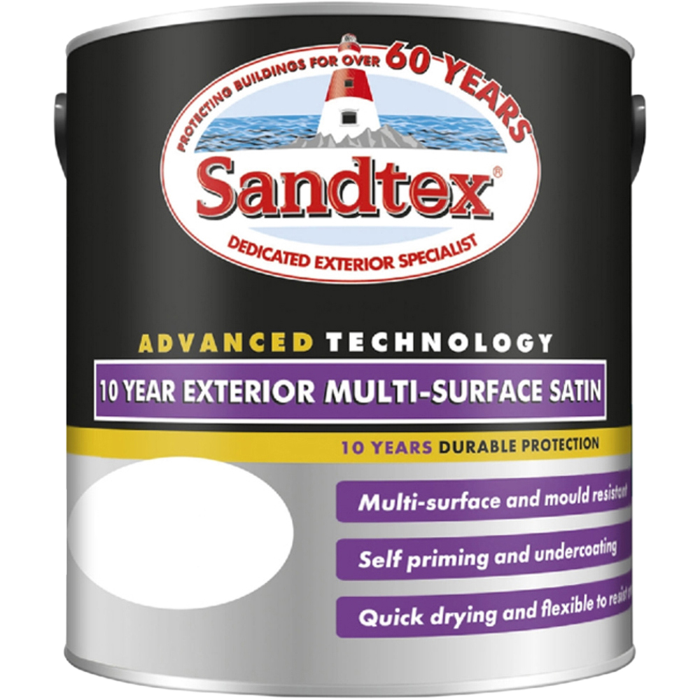 Sandtex 10-Year Exterior Multi-Surface Satin Paint is a versatile, durable protection for a variety of surfaces. This low-sheen, water-based paint offers up to 10 years of trusted weather resistance, mold resistance, and flexibility to prevent cracking and aluminium, and non-ferrous metals.