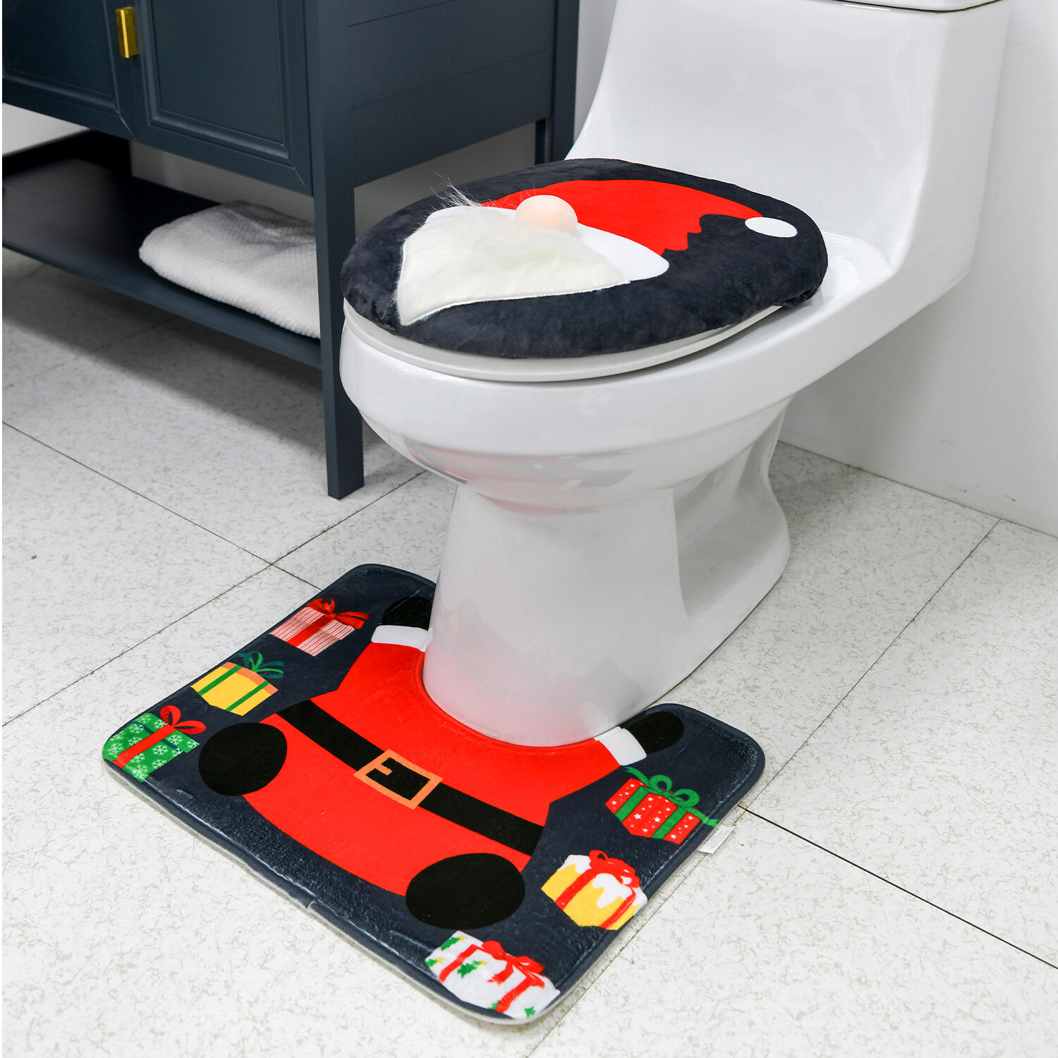 Make this holiday season extra special with the Santa Toilet Seat Cover Set. Made from pure polyester, this set includes a toilet cover and rug featuring a fun and unusual Santa Claus design to spruce up your bathroom for the holidays. This decorative set is perfect for adding a touch of holiday cheer to your home. Its whimsical design brings a festive spirit to any bathroom.