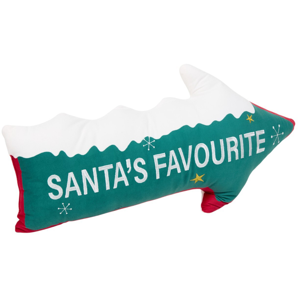 Make a playful addition to your home this holiday season with Santa's Favourite Cushion. Shaped like an arrow leading you to Santa's favourite lounging spot, this cushion brings a dash of fun to your space. It's crafted from soft materials to provide a super comfy feel, making it perfect for adorning cosy reading nooks, beds, sofas, and more.