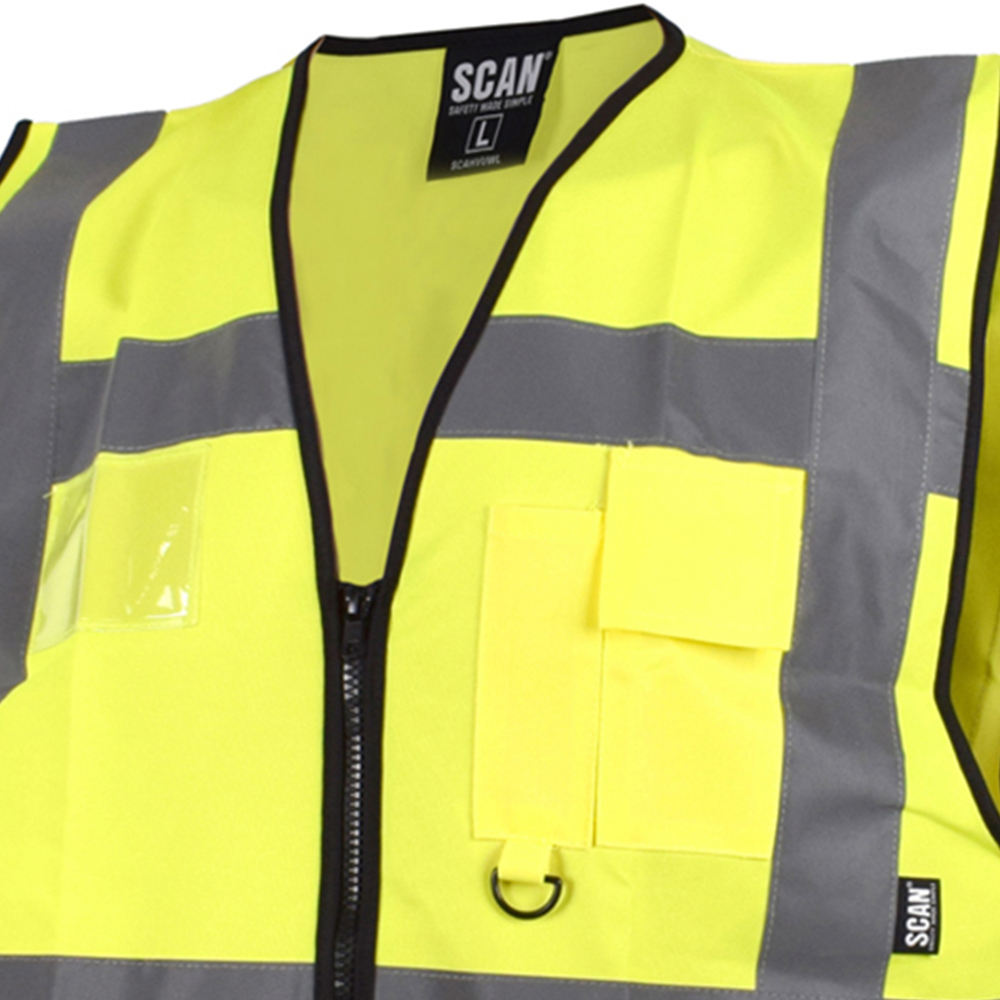The Scan Hi Visibility Utility Waistcoat XL in yellow conform to EN ISO 20471 Class 2. The utility waistcoat features retro-reflecting tape on the torso, chest and shoulders to maximise visibility, particularly during the hours of darkness. With a clear ID holder, D-Loop, pen pocket, one chest pocket and two large storage pockets, these waistcoats are suitable for a multitude of jobs.
