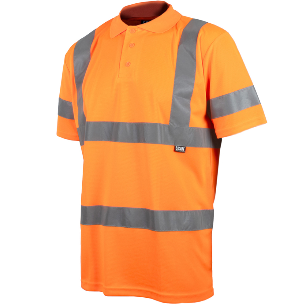 Let comfort and safety be your top priorities with the Scan High Visibility Polo Shirt Large Orange. This High Visibility polo shirt meets EN ISO 20471 Class 2 standards, ensuring you are seen, even in low light. Its horizontal reflective panels help maximise visibility, especially in the dark. Made from 100% polyester, this shirt is tough yet comfortable. With an open collar and short sleeves, it’s perfect for warm environments or warehouse settings where you need visibility but don’t need extra weather protection. The high-visibility fluorescent background and retro-reflecting tape make sure you stand out, keeping you safe and visible.