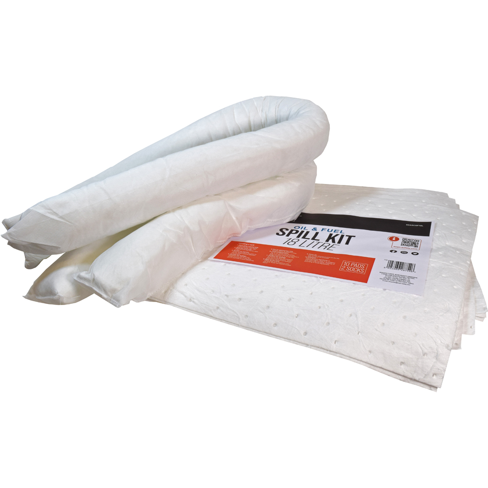Upgrade to effortless clean-ups with the Scan Oil and Fuel Spill Kit 18L. It is perfect for handling tough spills like oil, fuel and solvents. It includes high-performance absorbent pads and socks that quickly soak up liquid. Designed for use in vehicles and workshops, it can absorb up to 18 litres of spill. The kit comes with ten high-performance absorbent pads (40 x 50cm), two high-performance absorbent socks (8 x 120cm) and one disposal bag with tie, making clean-up simple and efficient.