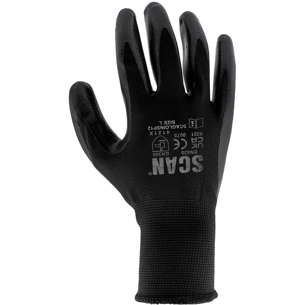 The Scan Size 8 Inspection Seamless Glove 12 Pack are ideal for use where extra dexterity is needed. They have a seamless polyester liner for user comfort, with Nitrile coated palm and fingers for improved resistance to oil, fuels and some organic solvents.