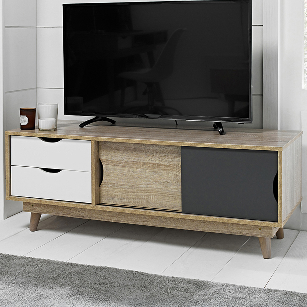 Scandi 2 Door 2 Drawer Oak Grey and White TV Unit