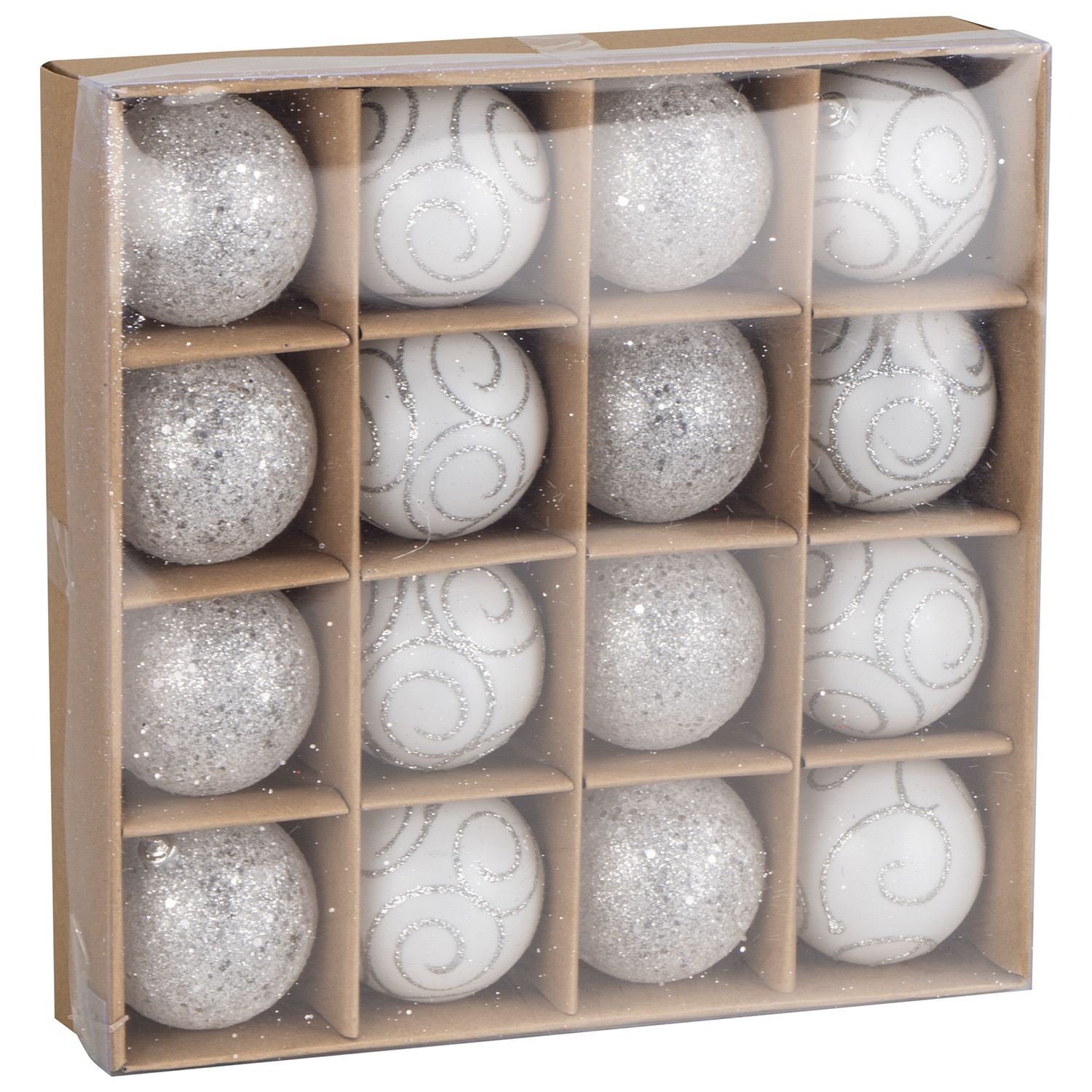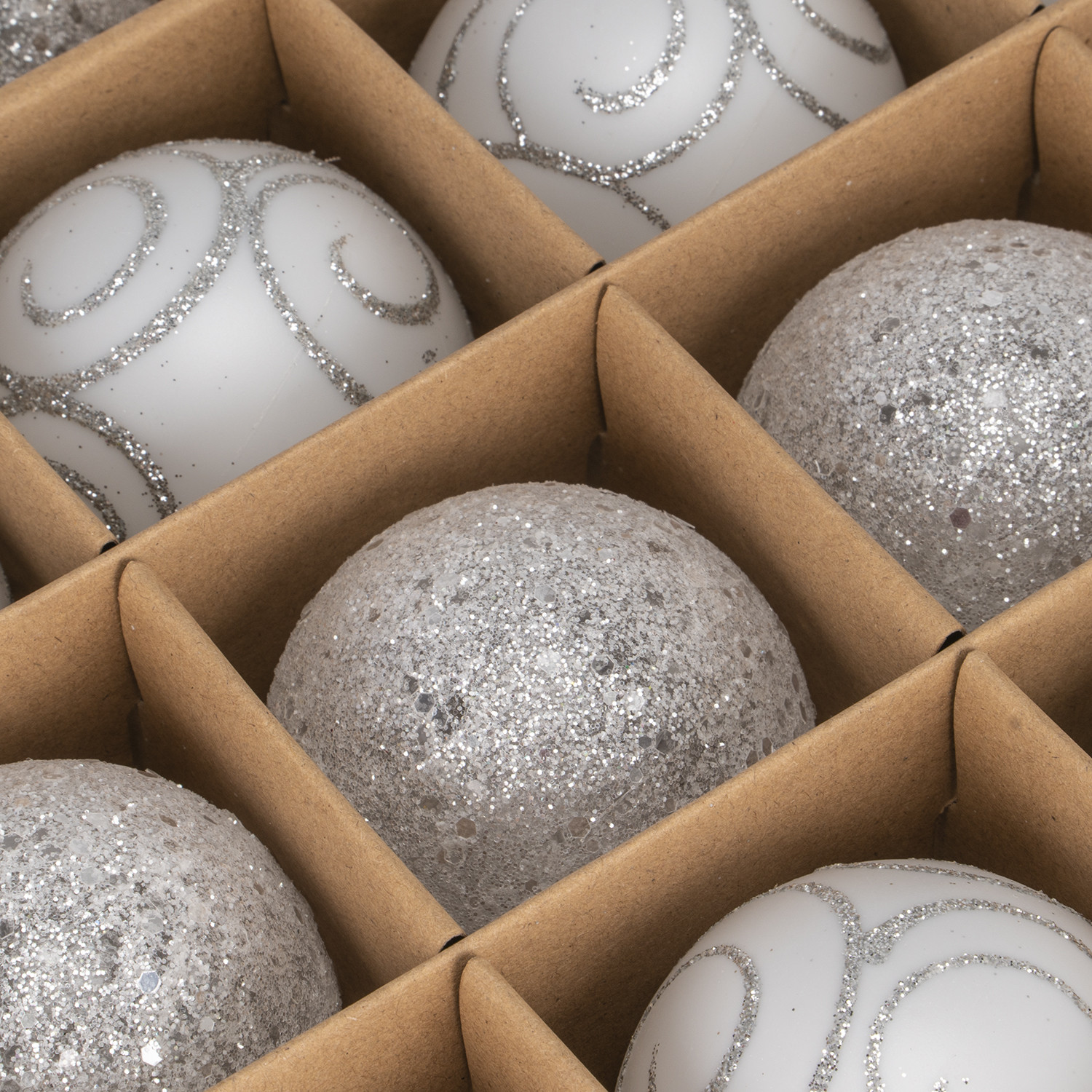 Add glitter and sparkle to your Christmas Tree this year with these Scandi Baubles. Coming in 2 festive designs - silver glitter and white with glitter swirls - you can coordinate your tree in sparkly, frosted style.