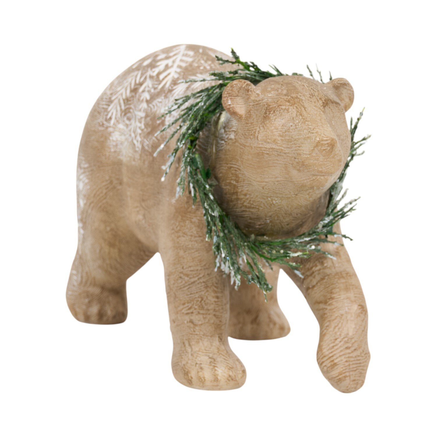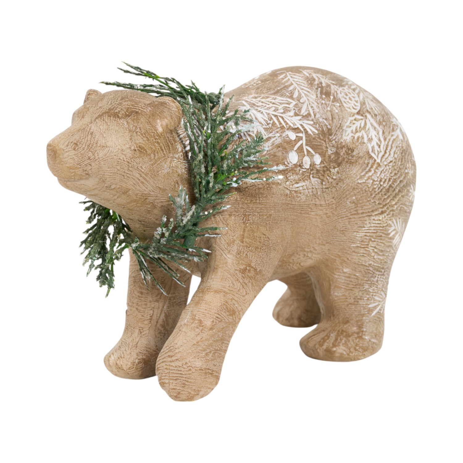 Bring woodland wonder into your Christmas decor with this Scandi Bear Ornament. Crafted in a wood-effect finish and accented with frosted pine detailing around its neck, this adorable bear evokes the serene beauty of a snowy Nordic forest. Perfect for mantels, shelves, or as part of a festive tablescape, it adds a cosy, nature-inspired touch to your seasonal setup.