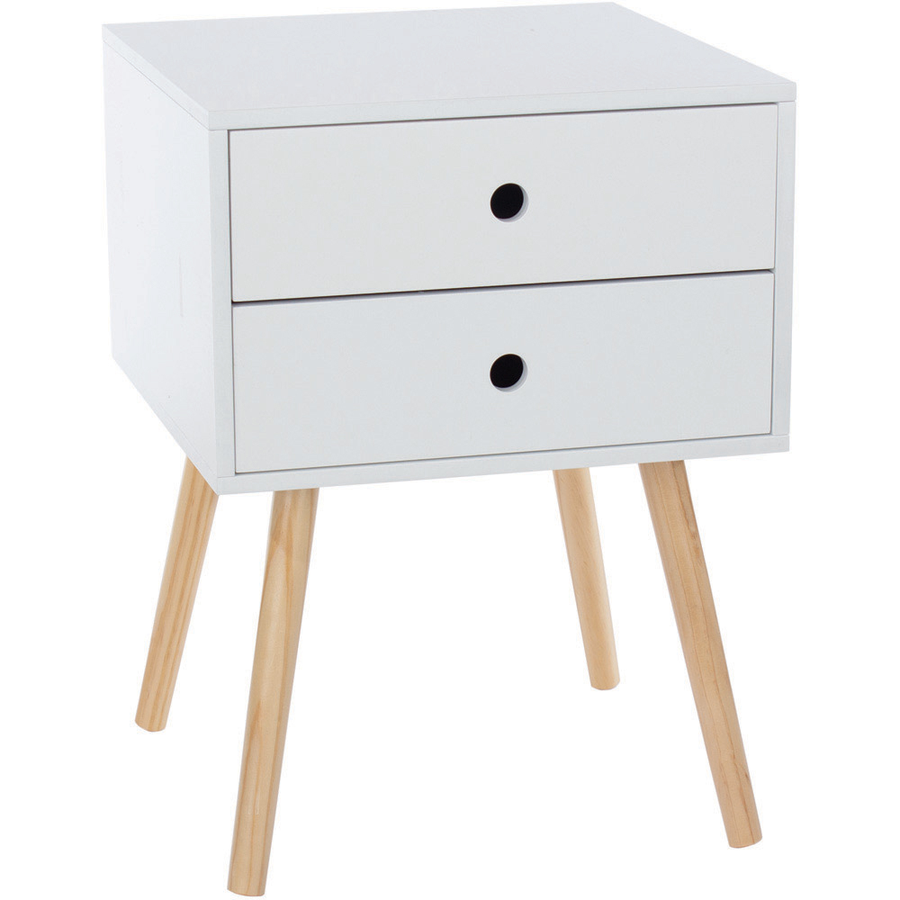 Scandia 2 Drawer White Wooden Legs Bedside Table