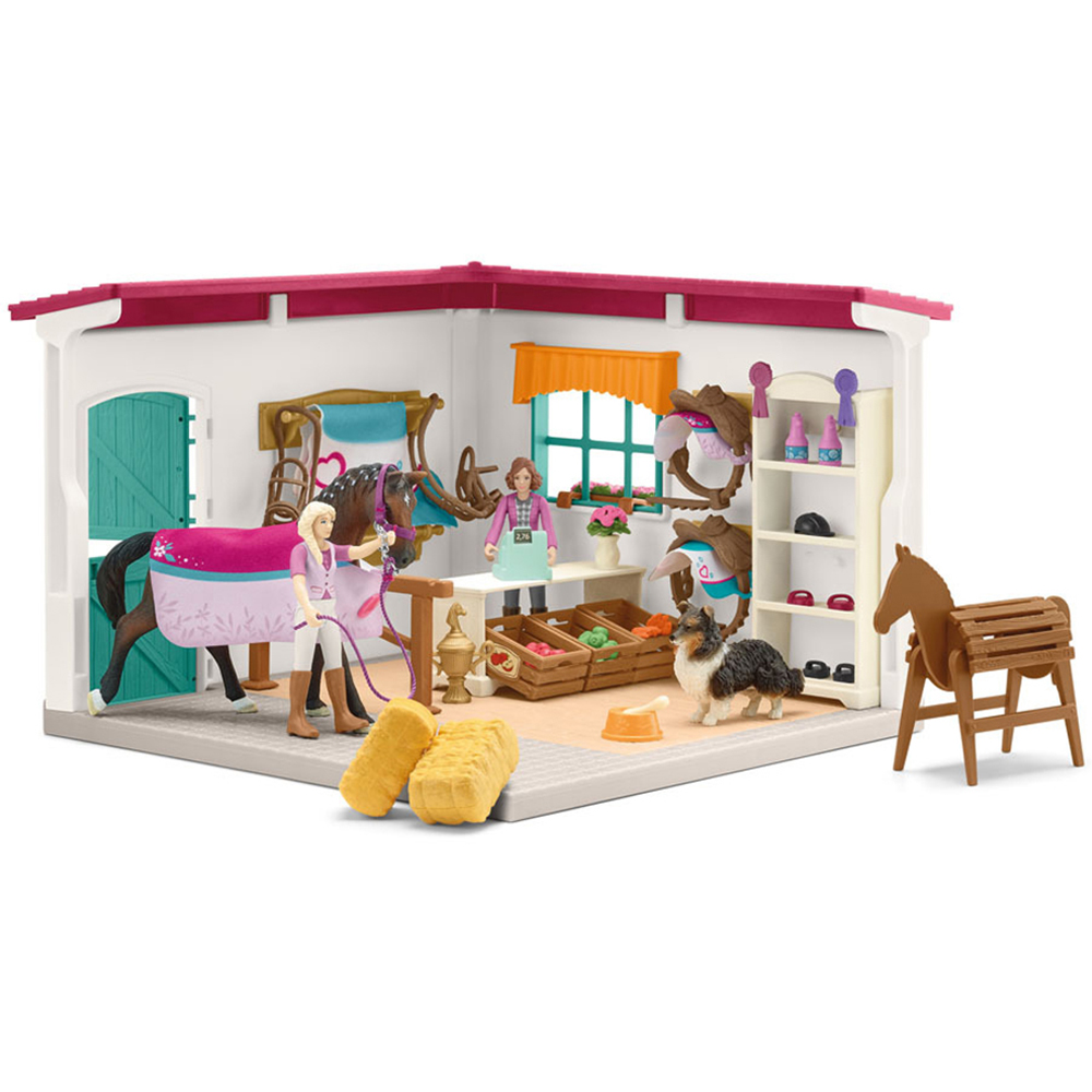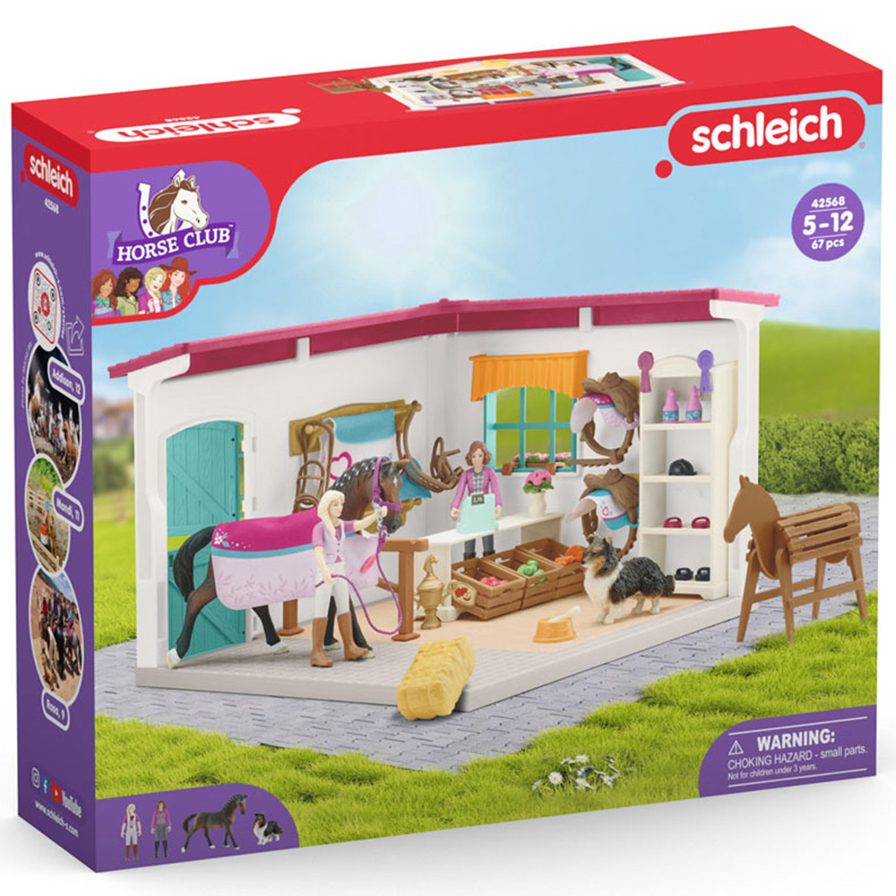 Ding-dong! Customers are here! You come to the Schleich Horse Club riding store to browse for hours and leave with a grin. Either because you've found something really great for your horse, or because the woman at the checkout has complimented you. Because she's always thrilled with all the horses in your collection. She only sells the best in her store. Food, saddles, brushes, even a dog - and yes, maybe even the lost hair clip from last week. I'm sure she'll give you a discount for regular customers very soon, and as always, she has a nice word to say.