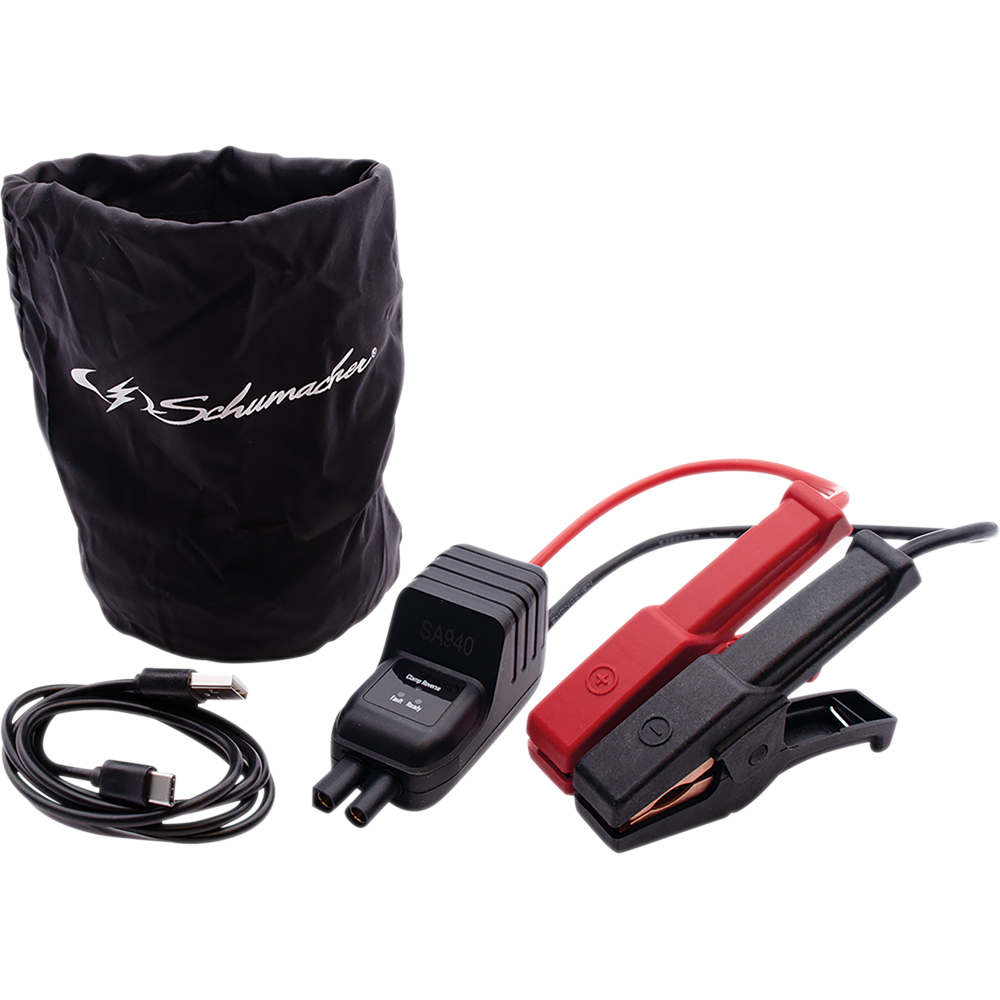 These compact Schumacher lithium jump starters and power bank are designed for on-the-go charging. Their advanced 16V 4-cell lithium technology provides superior starting performance for jump-starting 12V dead batteries. The Pre-Boost technology pre-charges deeply discharged batteries and the Pre-heat mode warms the battery for optimal starting in low temperatures. The built-in flashlight offers flashing and SOS modes for emergency use. There is an easy to read LCD screen. In addition to jump-starting cars the units function as a powerful battery pack offering wireless charging for Qi compatible devices and a USB-C output for charging mobile devices. For safety the units protect against reverse polarity short circuit low voltage high temperature and reverse charging. Includes a smart cable with battery clamps USB-C charging cable and storage case.