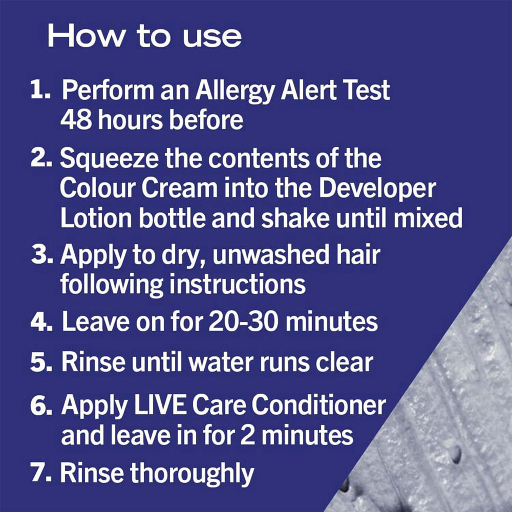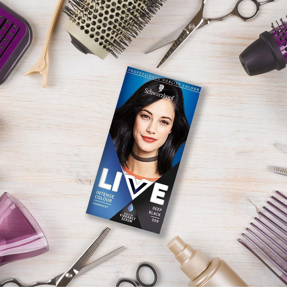 Schwarzkopf Live Intense Semi-permanent or Permanent hair colour in real red offers extra long-lasting, intense colour and amazing shine, so you can show off your inner confidence with ease. The Live Intense Colour range gives you maximum colour depth and radiance. With built-in Vibrancy Serum for anti-fade and stunning shine - say goodbye to greys. Features: Extra intense, Long-lasting, vibrant colour Built-in vibrancy serum Maximum colour depth and radiance Comes with vitamins & oils Anti-fade, stunning shine Ingredients: Colour Cream: Aqua, Cetearyl Alcohol, Ammonium Hydroxide, Coconut Alcohol, Cocamidopropyl Betaine, Ceteareth-50, Cocos Nucifera Oil, Ceteareth-20, Parfum, Sulfuric Acid, Potassium Hydroxide, Sodium Chloride, Sodium Sulfite, Ascorbic Acid, Sodium Silicate, Propylene Glycol, Etidronic Acid, Toluene-2, 5-Diamine Sulfate, Resorcinol, N, N-Bis(2-Hydroxyethyl)-p-Phenylenediamine Sulfate, 2-Amino-4-Hydroxyethylaminoanisole Sulfate, 2-Methylresorcinol, 4-Amino-2-Hydroxytoluene, Quartz Care Conditioner: Aqua, Cetearyl Alcohol, Behentrimonium Chloride, Prunus Armeniaca Kernel Oil, Litchi Chinensis Fruit Extract, Morinda Citrifolia Fruit Extract, Panthenol, Hydrolyzed Keratin, Isopropyl Myristate, Citric Acid, Phenoxyethanol, Stearamidopropyl Dimethylamine, Isopropyl Alcohol, Glyceryl Stearate, Parfum, Sodium Methylparaben, Propylene Glycol, Polyquaternium-37, Glycerin, Dicaprylyl Carbonate, Butylphenyl Methylpropional, Limonene, Linalool, Hexyl Cinnamal, Lauryl Glucoside, Potassium Sorbate Hoe to Use: Express Your Colour Creativity Discover intense colour vibrancy thanks to the built-in electrifying pigments. Schwarzkopf Selection Guide 1 Washout in 12-15 washes 2 Lasts up to 28 washes 3 Permanent For long or thick hair we recommend using two packs. Note: Conduct an allergy alert test 48 hours before each time you colour. Box Contains: 1 x Tube of LIVE Colour Crème, 50ml 2x Sachets LIVE Colour Conditioner, 15ml 1 x Pair of Gloves, 1 x Instruction Leaflet