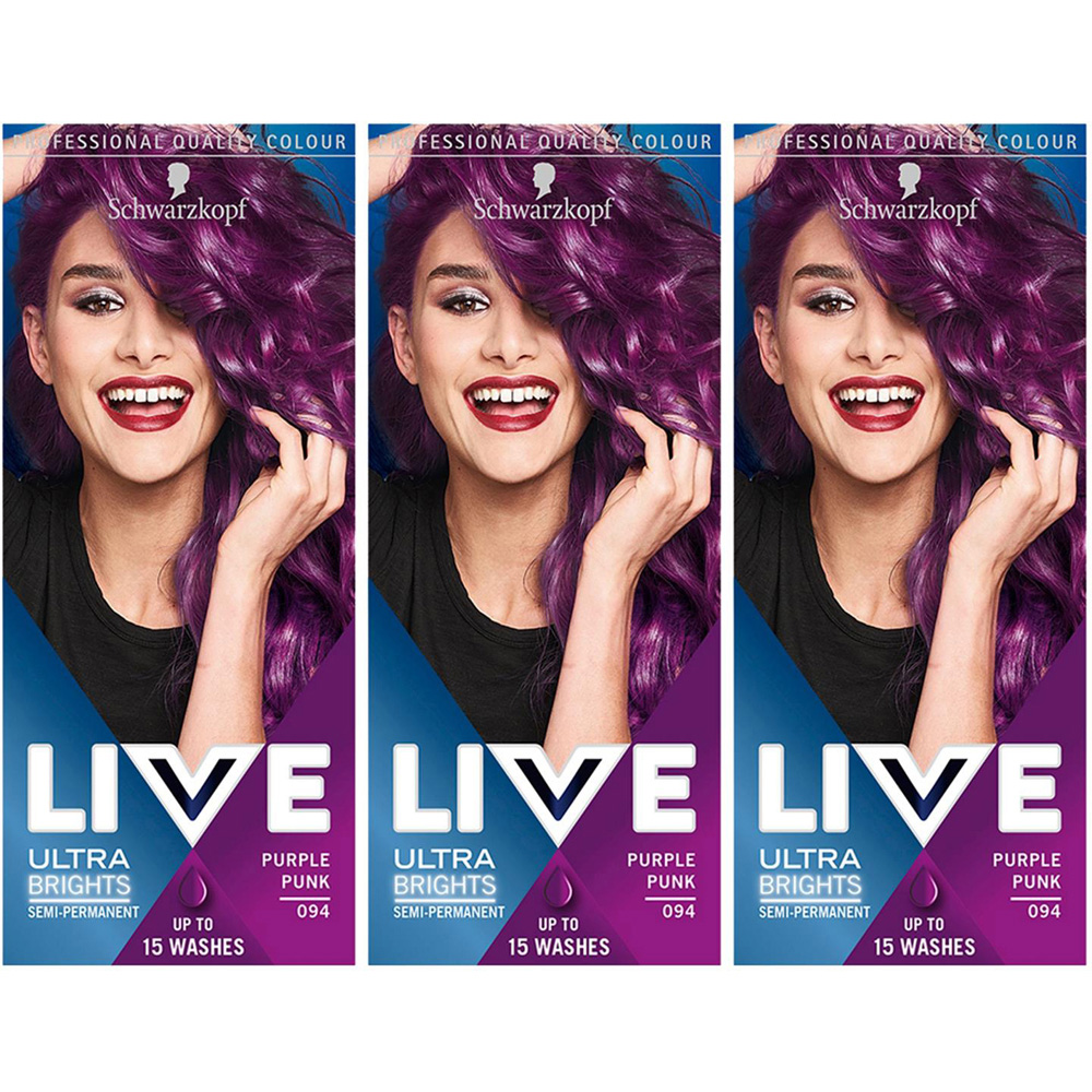 Schwarzkopf Live Purple Pink Ultra Brights Semi-Permanent Hair Dye, Ultra Brights 3 Pack