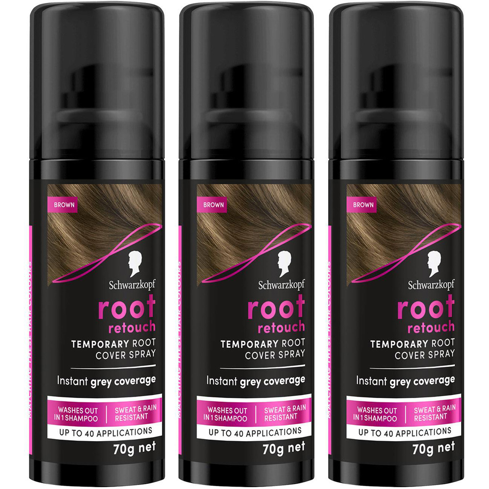 Schwarzkopf Root Retouch Brown Temporary Root Cover Spray 70g 3 Pack