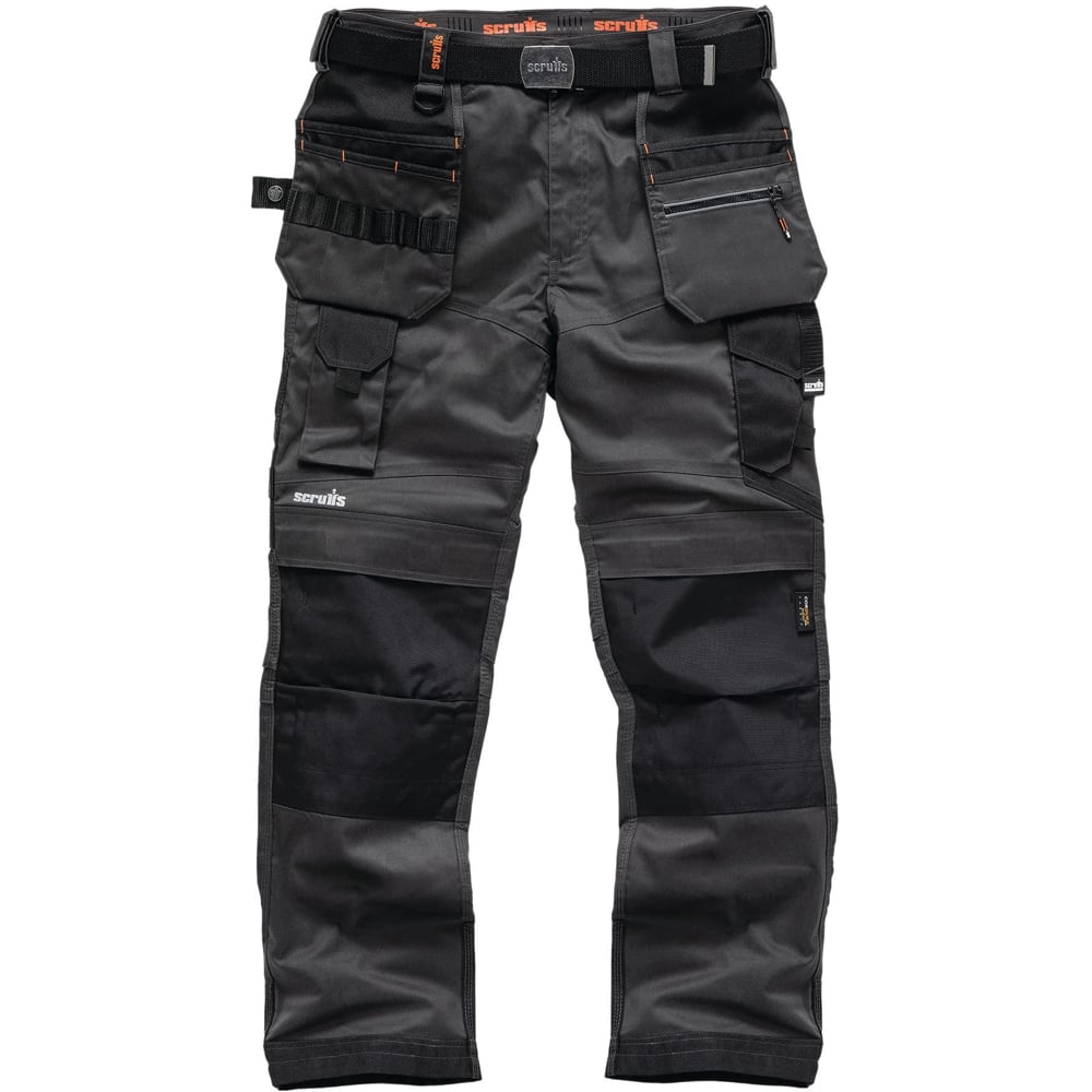 Flexible slim fit with 2-way stretch and heavy duty ballistic Cordura fabric reinforcements Mesh ventilation panels and top-loading, 2-position knee pad pockets Holster pockets, cargo pocket, rule pocket, 2 x mobile phone pockets and zipped pocket Hammer loop, tool loops, hook-and-loop tool strap at waist and D-ring for tool storage 81% polyester 19% cotton, 250gsm.