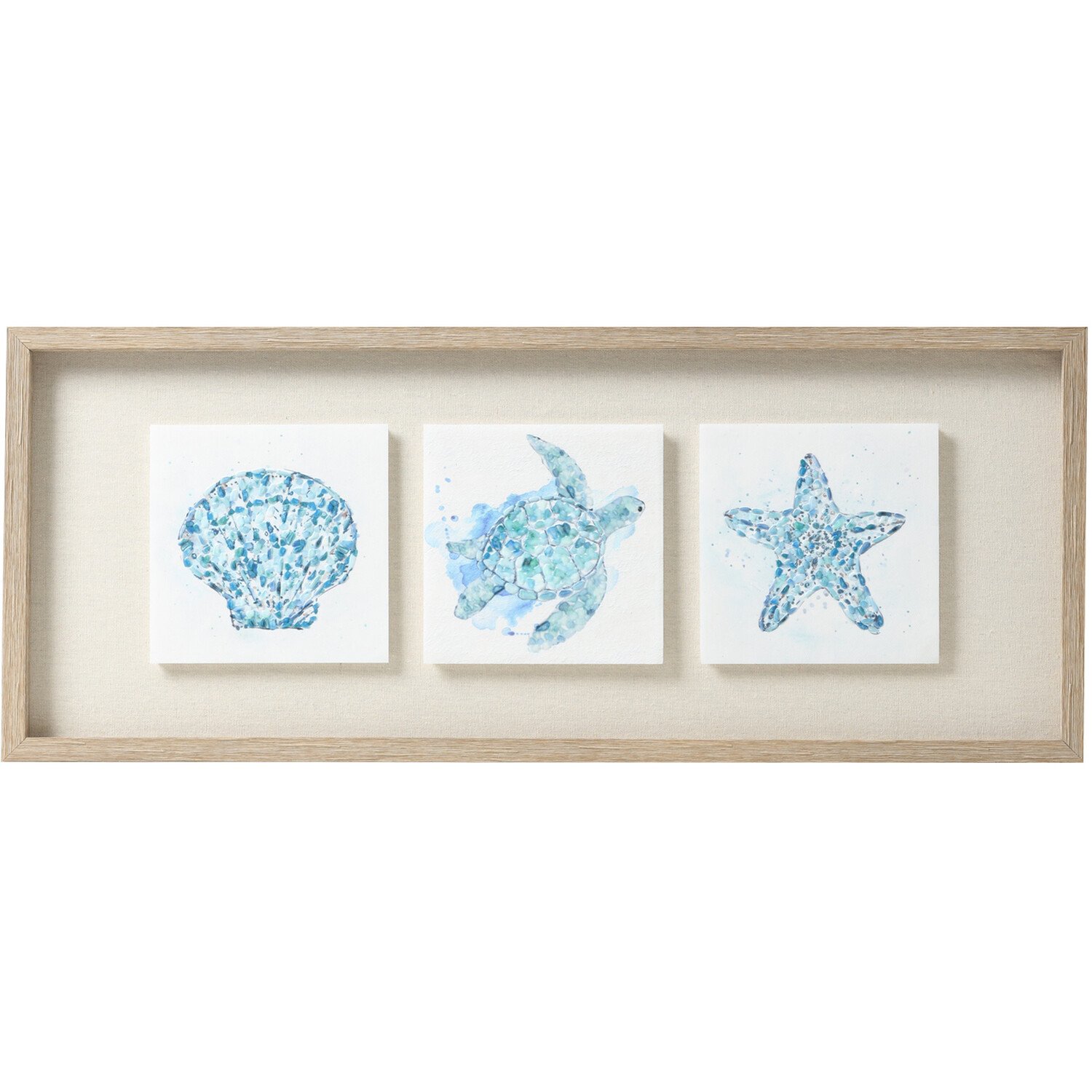 Offering a charming coastal feel to your home, the Sea Life Trio 3D Framed Art will give your space the ideal finishing touch. The large frame features three sea creatures: a scallop shell, a sea turtle, and a starfish, all with a watercolour effect in gorgeous tones of blue inspired by the sea. The frame has a neutral colour scheme that allows the blue tones to pop and coordinate beautifully with your home decor.