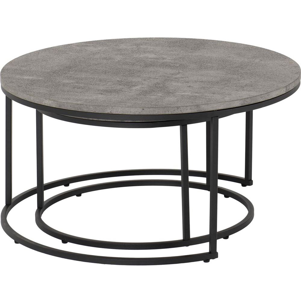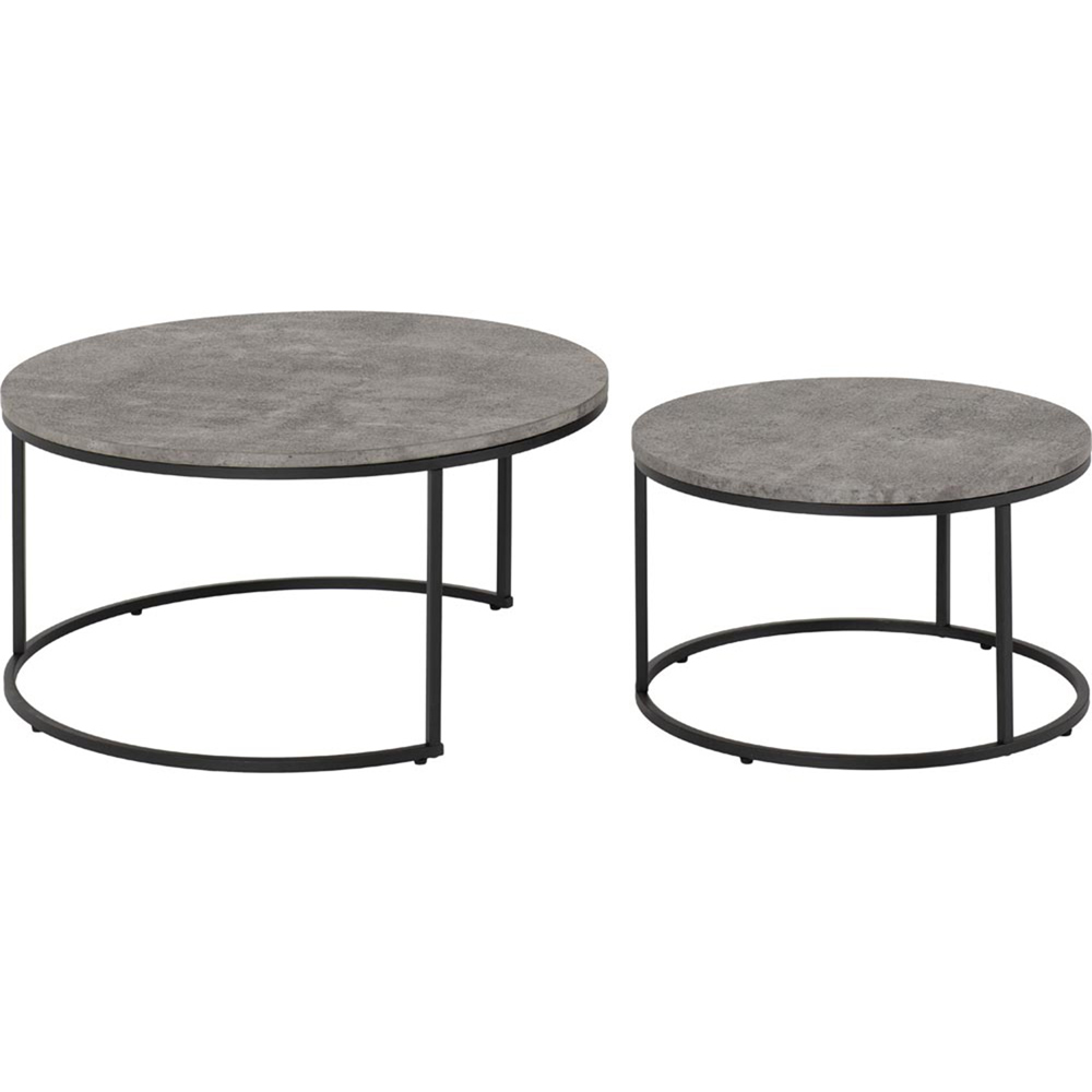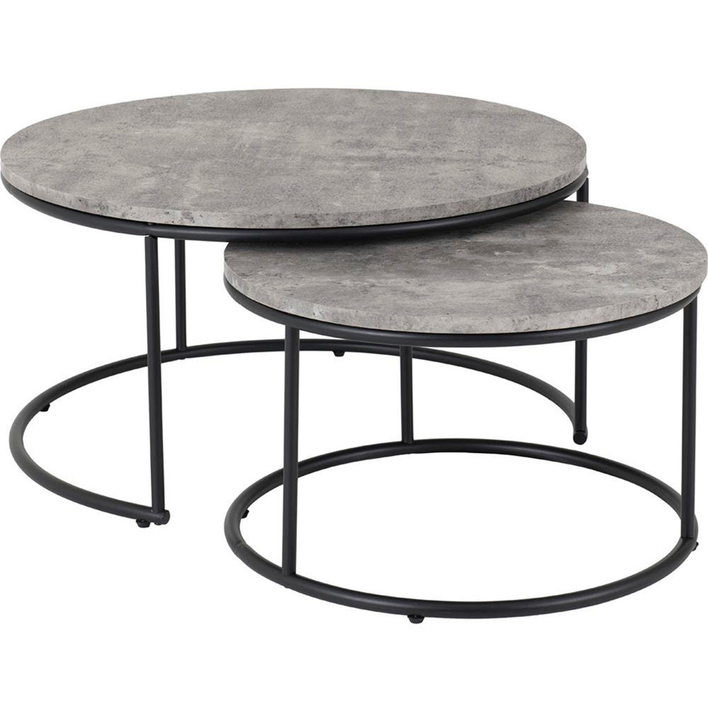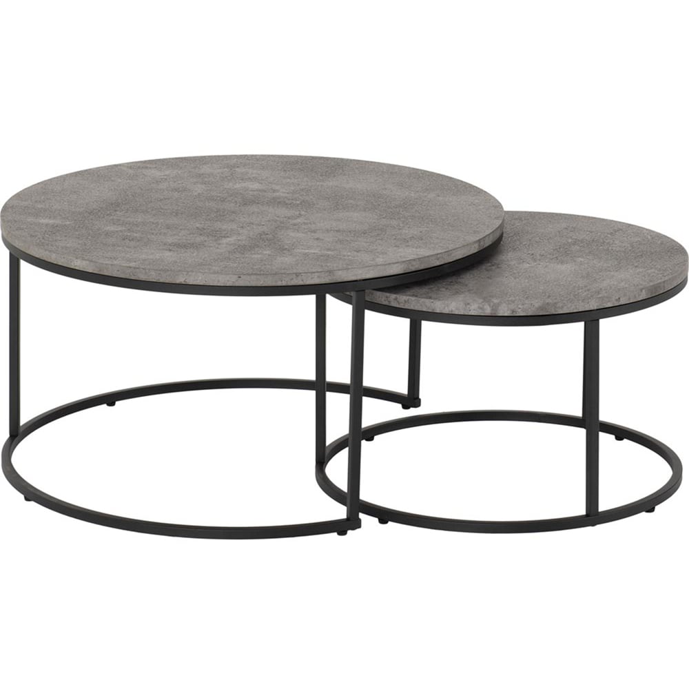 Add style and practicality to your space with this Seconique Athens Concrete Round Nest of Tables Set of 2. With its stunning industrial-chic design, this table set will make a cool and modern addition to your living room. Also, this self-assembly table features a contemporary concrete-effect top with rounded tops and comes complete with complementing black metal legs to add to the industrial design. Space-saving, the tables have a nesting design, so that you can place the shorter one underneath the other when not in use. Set of 2.