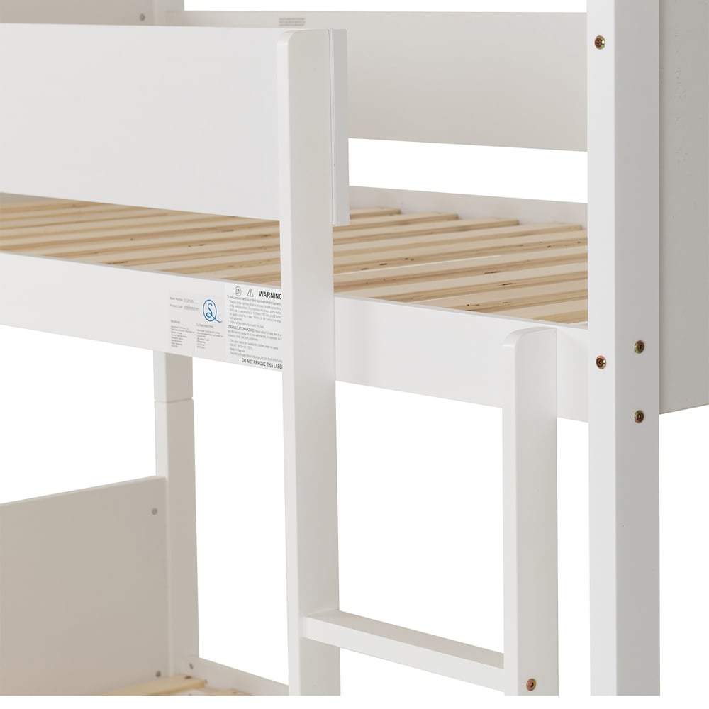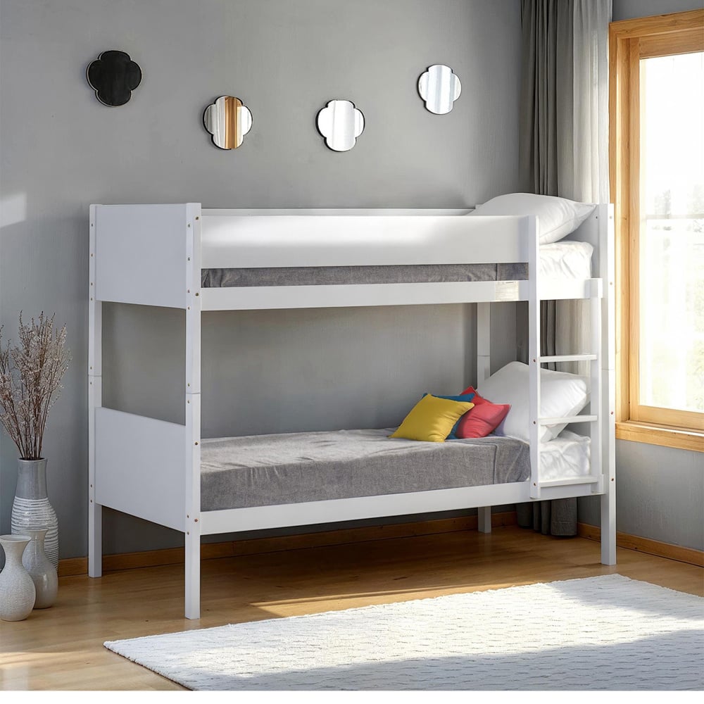 Transform shared bedrooms into cosy retreats with a white wooden single bunk bed featuring safety rails that brings both practicality and charm to any space. Crafted from sturdy wood with a timeless white finish, it blends effortlessly with décor for children or teenagers and maximises floor space with its vertical stacking design. Safety rails on the top bunk and a secure ladder offer reassurance for parents, while easy assembly and compatibility with standard single mattresses make it a smart choice for modern family living.