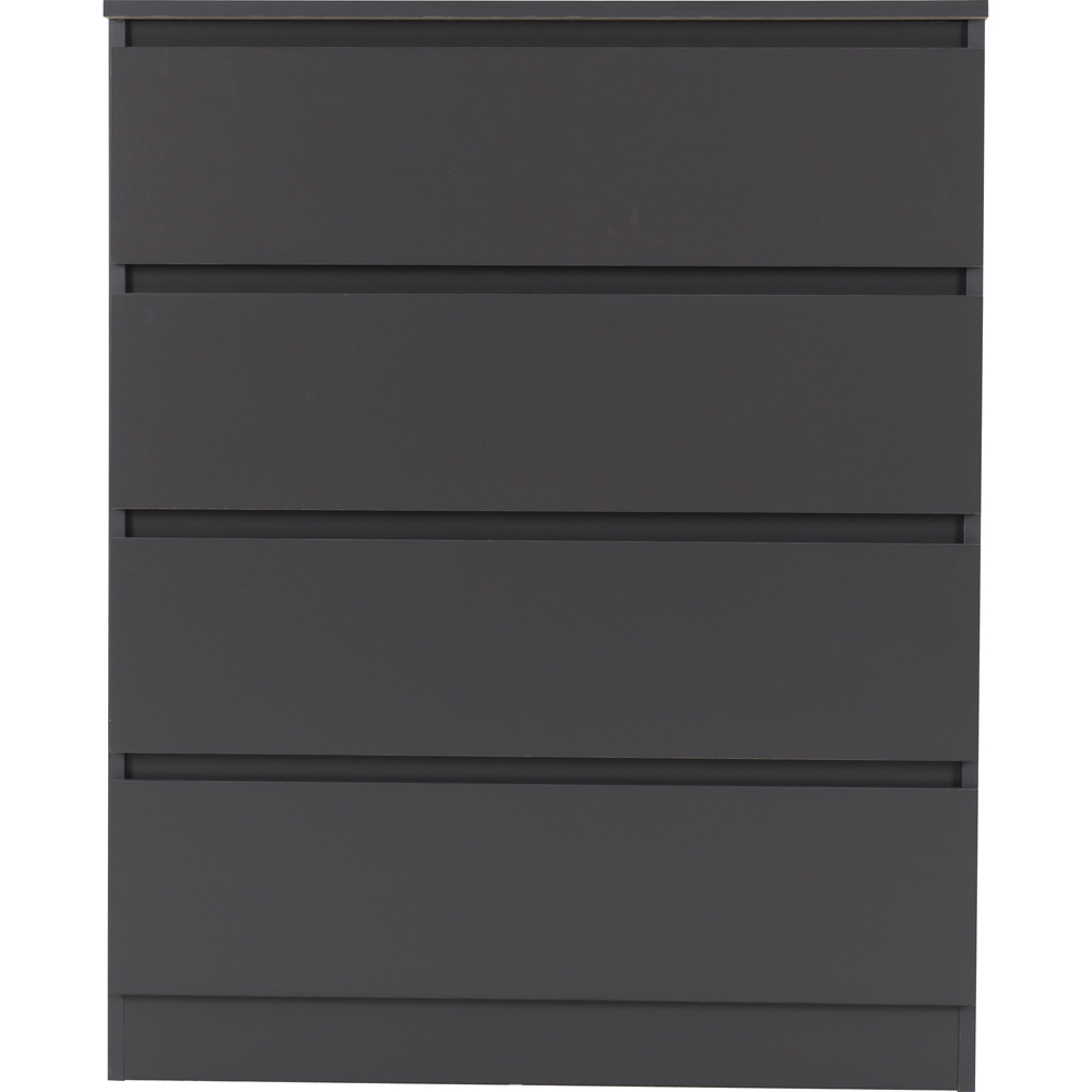 The Seconique Malvern Grey Chest with four drawers is a stylish and practical storage option for your bedroom. Its sleek and modern design adds a contemporary touch to your decor. The handle-less design enhances its sleek appearance, while the ample storage space allows you to organise your clothing, accessories, and other items efficiently. This chest of drawers seamlessly complements various interior styles, making it a versatile and functional addition to your space.