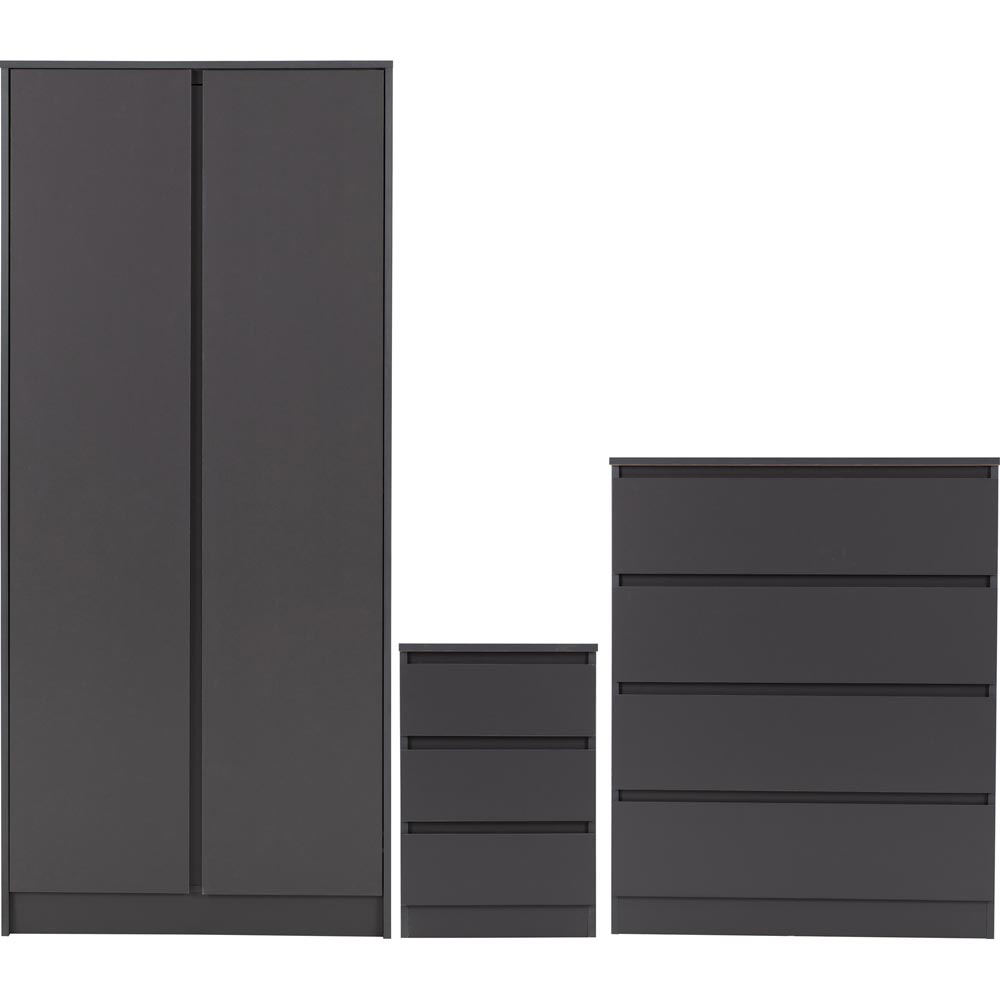 The Seconique Malvern Grey Trio Set offers a versatile and complete solution for your bedroom furniture needs. This set seamlessly combines functionality and elegance, consisting of a wardrobe, a four drawer chest, and a three drawer bedside table. With its clever combination of drawers and wardrobe space, it provides ample storage to keep your clothes and belongings neatly organised. Its handle-free design adds a touch of sleekness and simplicity to the overall look.