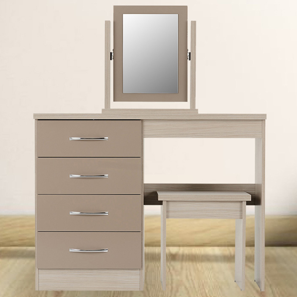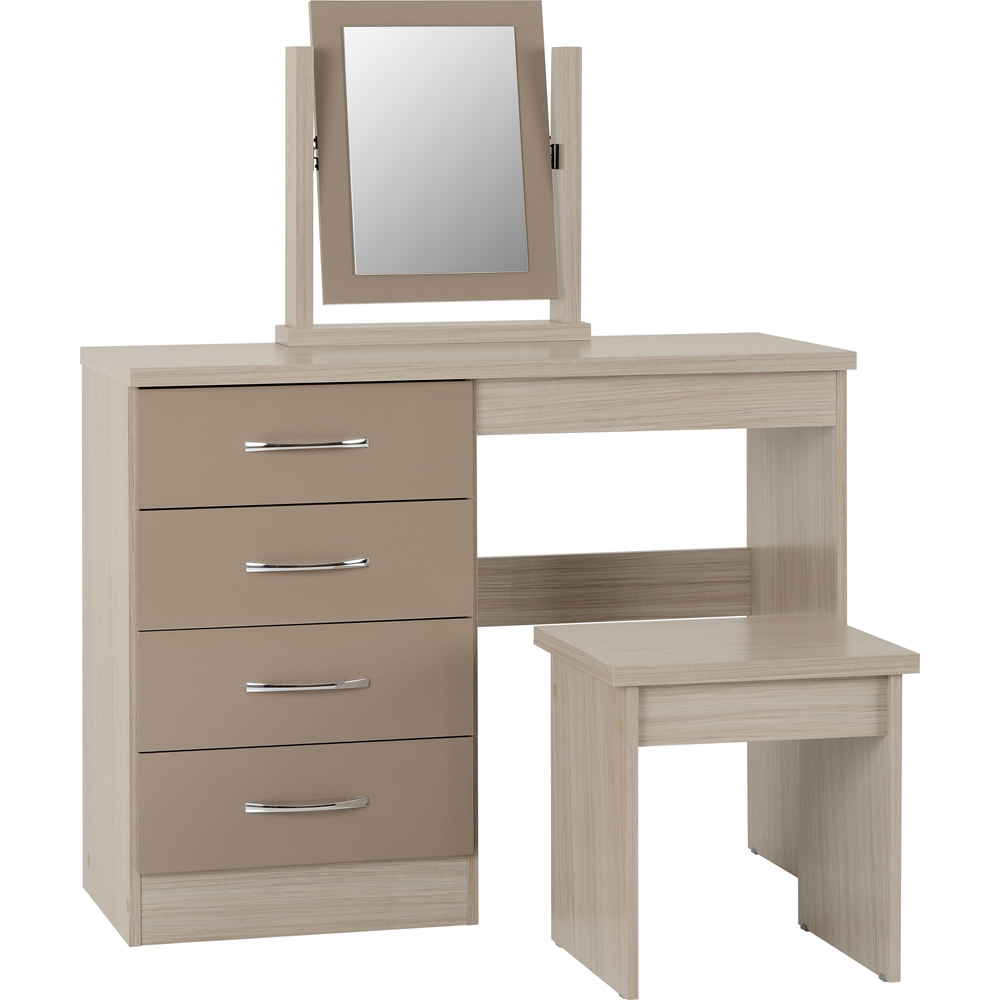 Seconique Nevada Oyster Gloss Light Oak Effect Veneer Dressing Table Set with Mirror
