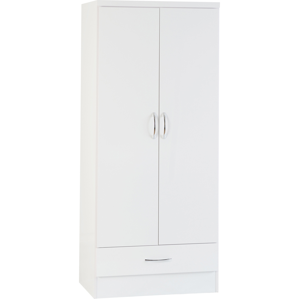 Ideal for completing the bedroom setup, this Nevada Wardrobe Bedroom Set from Seconique is a complete and stylish solution for your bedroom. This four-piece set includes a spacious wardrobe with two doors and one drawer, two bedsides and a storage chest, providing ample storage. Each boasts a strong and sturdy construction with metal handles and drawer runners. Featuring a white gloss finish, its modern design and neutral tones seamlessly blend into various bedroom styles.