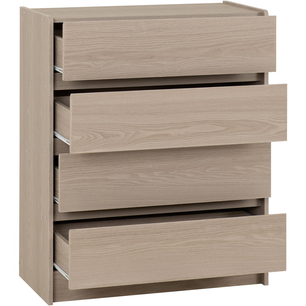 The Paris 4 Drawer Chest in Smoked Ash Effect combines modern style with practical storage, making it an ideal addition to any bedroom. With four spacious drawers, this chest provides ample room for clothes, accessories, and other essentials, helping you keep your space organised and clutter-free. The smoked ash finish adds a warm, sophisticated touch that complements a variety of decor styles, from minimalist to rustic.