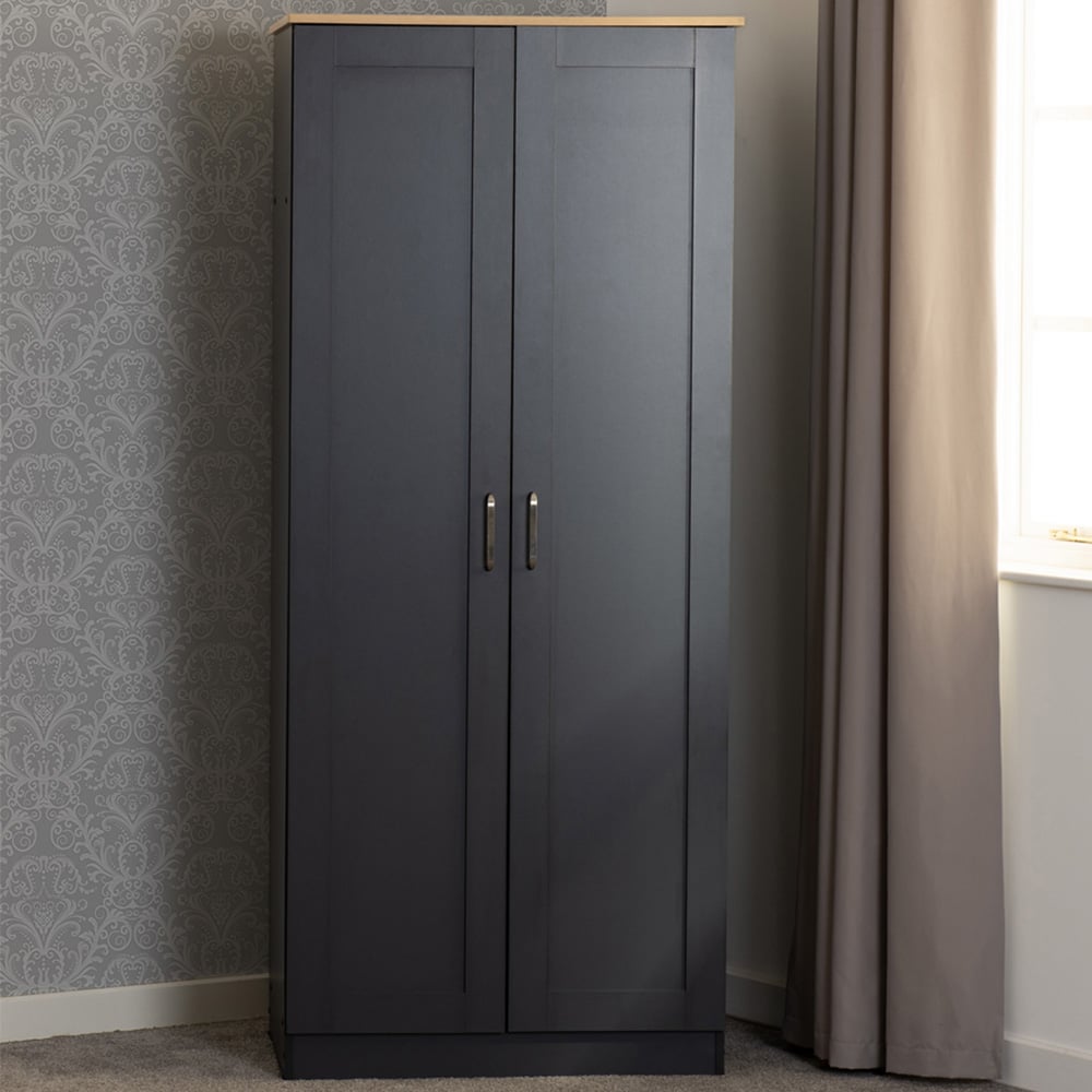 Seconique Portland 2 Door Grey and Oak Effect Wardrobe