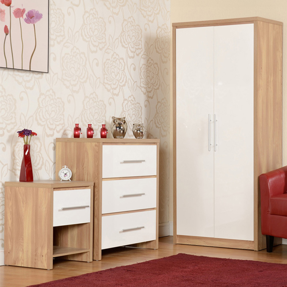 Seconique Seville White Gloss Light Oak 3 Piece Bedroom Furniture Set