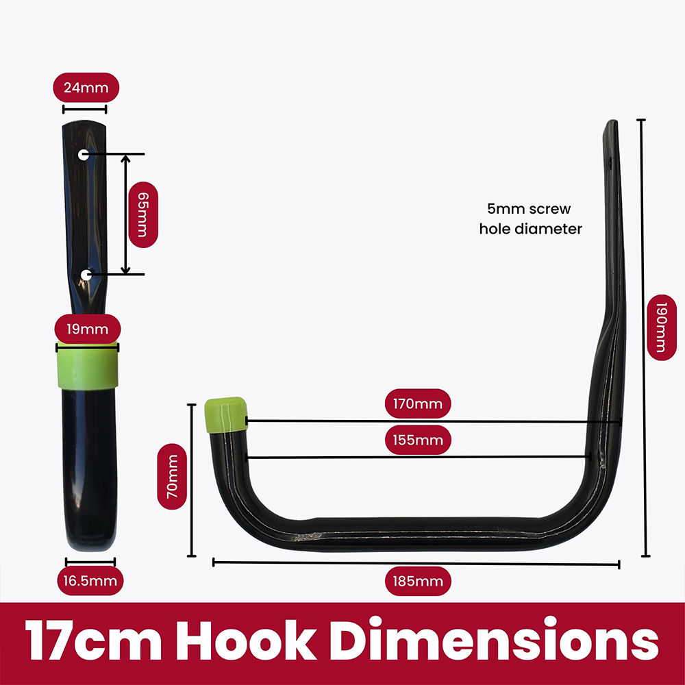 An assorted size set of 6 multipurpose storage hooks in black. Perfect for organising those often neglected areas of the home, such as sheds, garages and workshops.