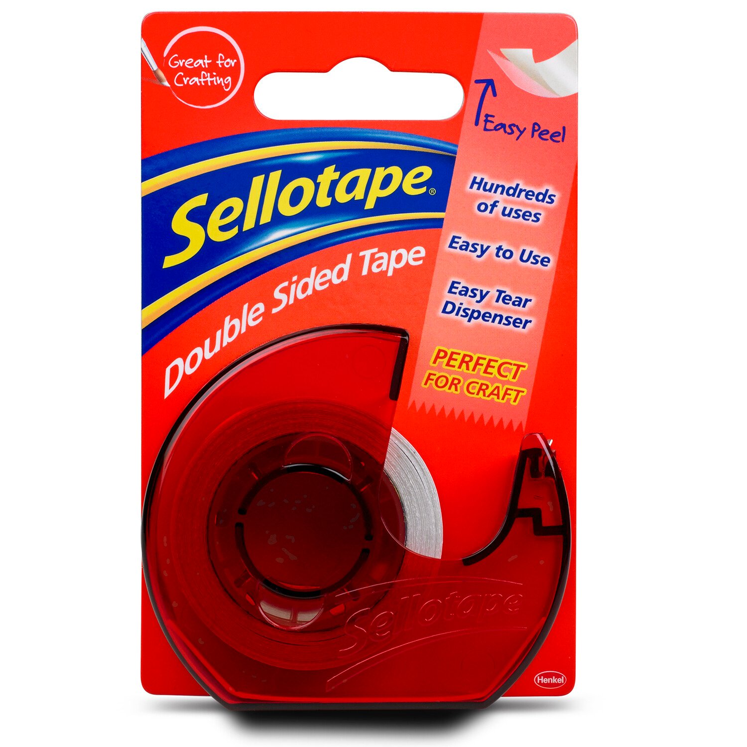 Sellotape Double Sided Tape with Dispenser features strong clear tape that offers a high-strength adhesive on both sides and is easy to peel for quick and effective sticking and mounting. Ideal for arts and crafts with hundreds of craft uses such as scrapbooks, photos, or decorations. The Sellotape clear tape is easy to tear by hand without the need for scissors whatsoever, making it quick and easy to use for almost anyone.