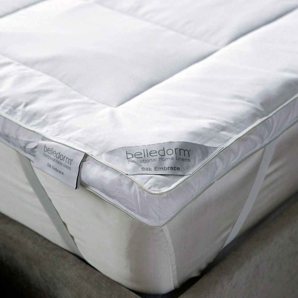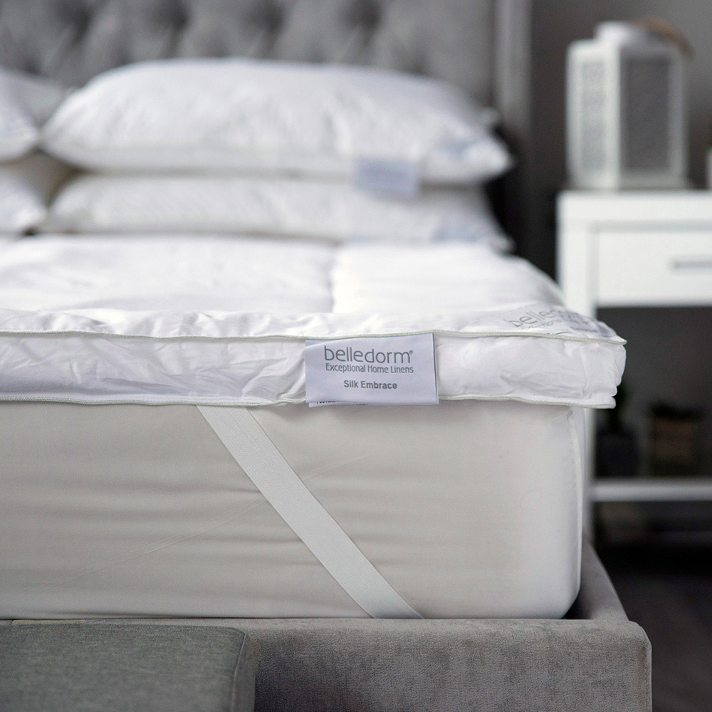 This luxurious silk-filled topper from Serene is designed to combine the benefits of luxury, comfort, health and practicality. Luxuriously lightweight, soft and comfortable, it is made using quality materials which makes it naturally hypoallergenic. It also helps absorb moisture and regulate temperature to provide optimum comfort. Size: King Bed, 152 x 220cm. Material: 100% cotton cover. Filling: 20% Mulberry silk and 80% conjugated Polyester filling. Care and use: Machine washable at 30C gentle cycle silk/wool program. Do not tumble dry. Flat natural drip dry.