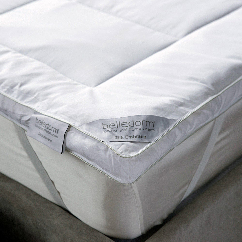 This luxurious silk-filled topper from Serene is designed to combine the benefits of luxury, comfort, health and practicality. Luxuriously lightweight, soft and comfortable, it is made using quality materials which makes it naturally hypoallergenic. It also helps absorb moisture and regulate temperature to provide optimum comfort. Size: Super King Bed, 183 x 220cm. Material: 100% cotton cover. Filling: 20% Mulberry silk and 80% conjugated Polyester filling. Care and use: Machine washable at 30C gentle cycle silk/wool program. Do not tumble dry. Flat natural drip dry.