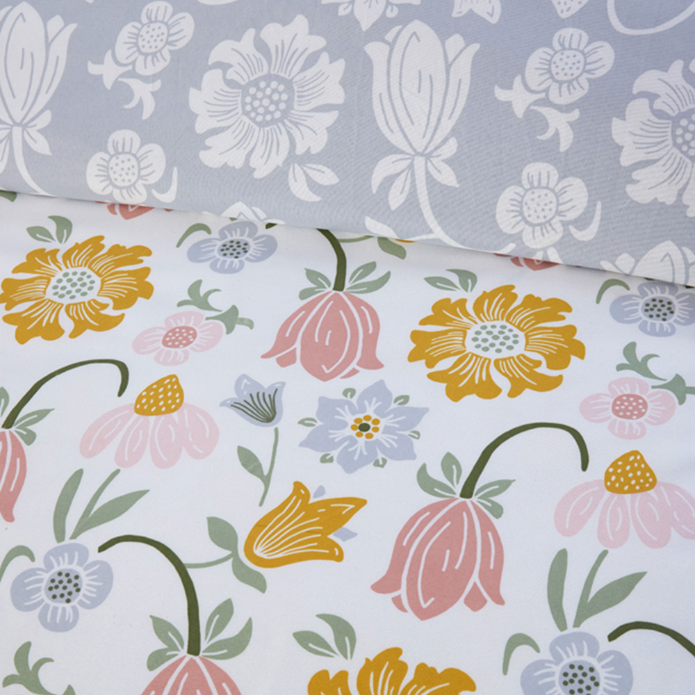 This Serene Victorian Bloom Double Multicolour Microfibre Fabric Reversible Duvet Cover Set adds a touch of classic elegance to any bedroom with its vintage-inspired floral design. Featuring vibrant blooms on a white background, complemented by a soft blue reverse, the designs offer comfort, versatility, and timeless charm.