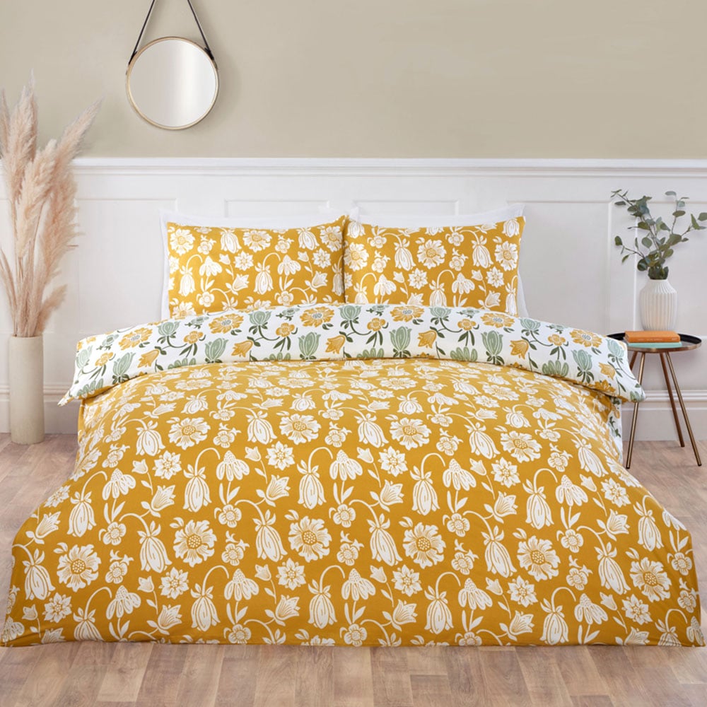 This Serene Victorian Bloom Single Green Microfibre Fabric Reversible Duvet Cover Set adds a touch of classic elegance to any bedroom with its vintage-inspired floral design. It features cheerful yellow and green tones with a rich mustard reverse, bringing warmth and brightness to your space. Both designs offer comfort, versatility, and timeless charm.