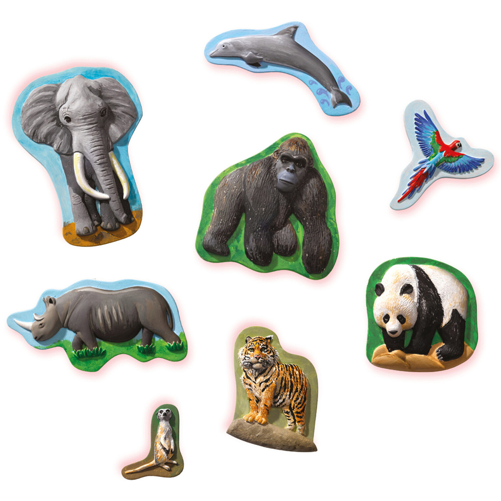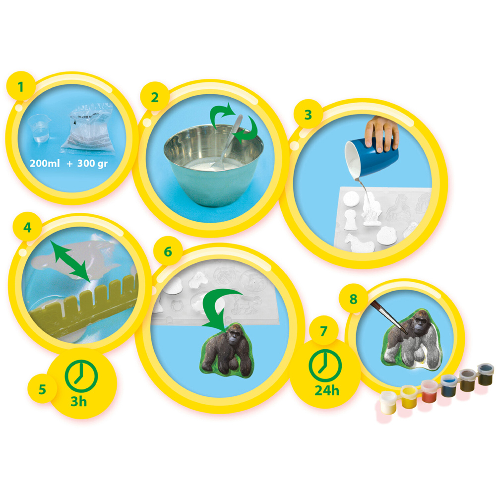 Create your zoo with the SES Creative Animals Casting and Painting Set. This kit allows you to craft and paint 11 different animals using plaster, including an elephant, dolphin, zebra, tiger, gorilla, parrot, rhino, panda, koala, giraffe, and meerkat. The set includes everything you need to bring these animals to life, with fast-drying plaster and paint. Full instructions are provided for a fun and creative experience.